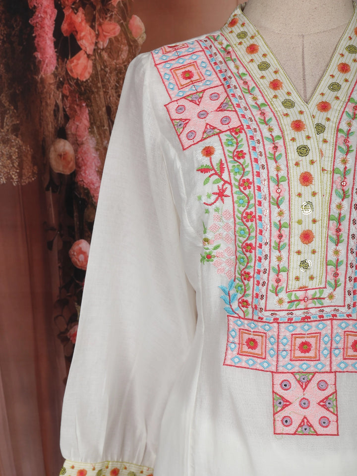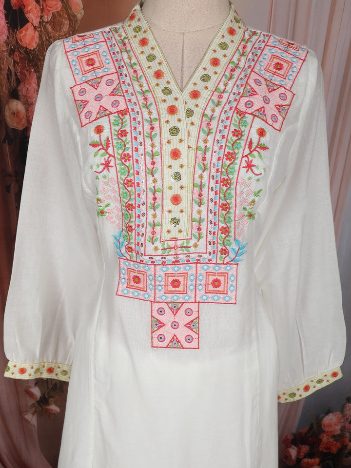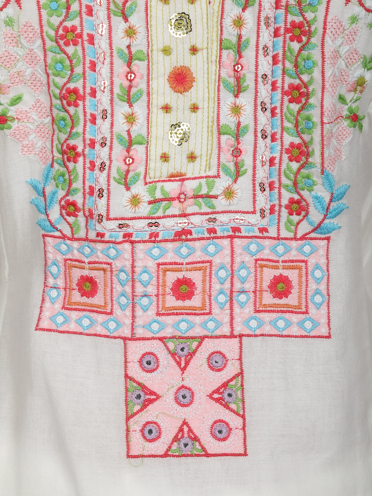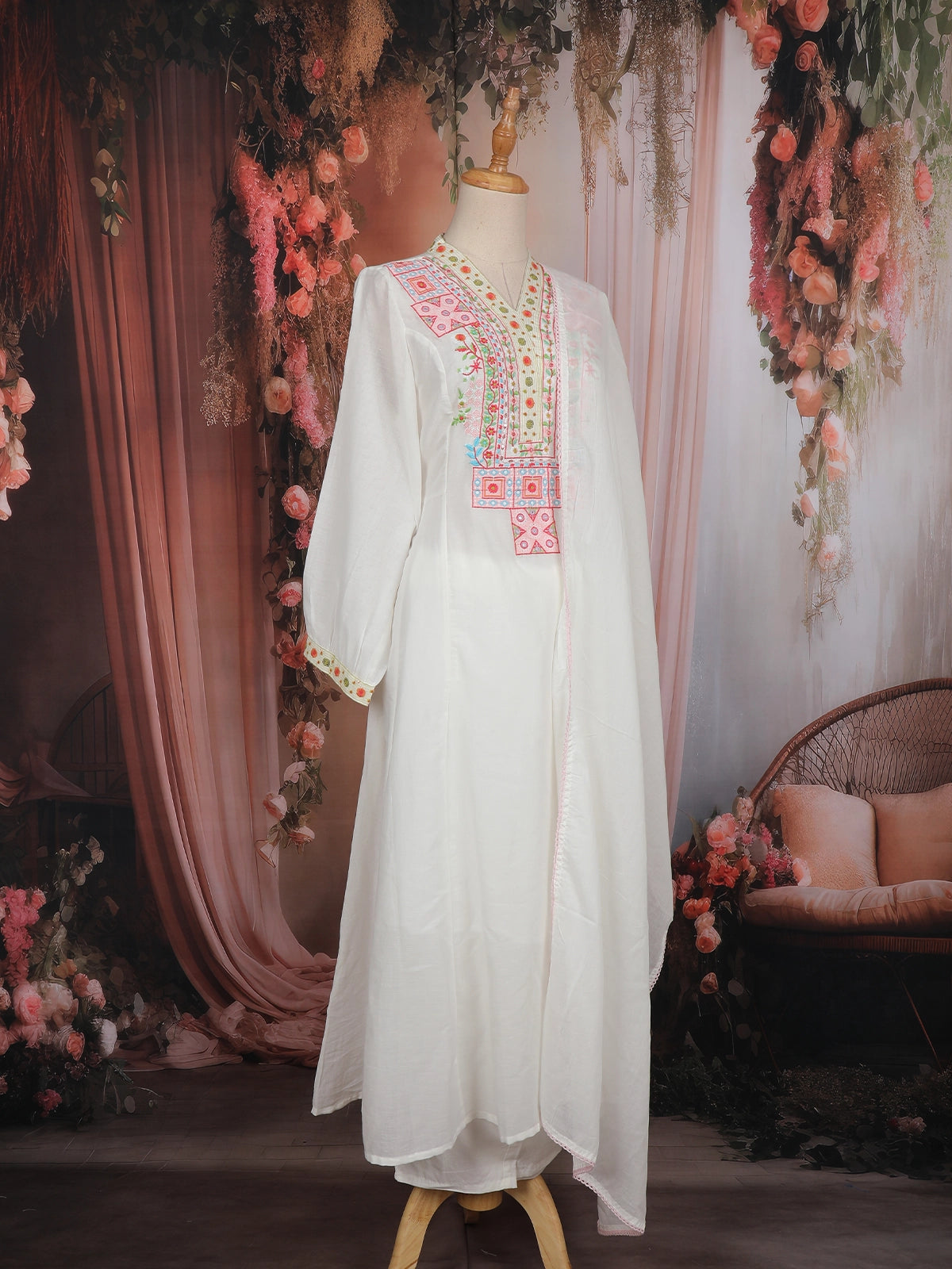 Off-White Multicolor Embroidered Cotton Salwar Suit with Dupatta