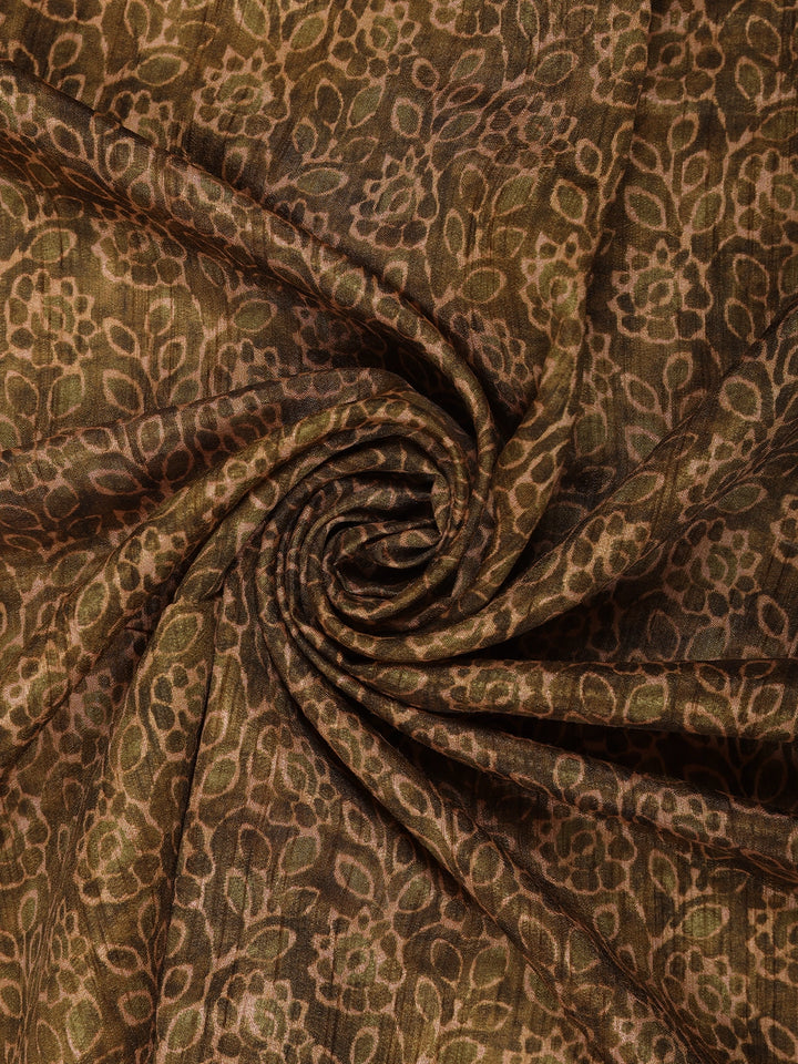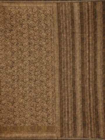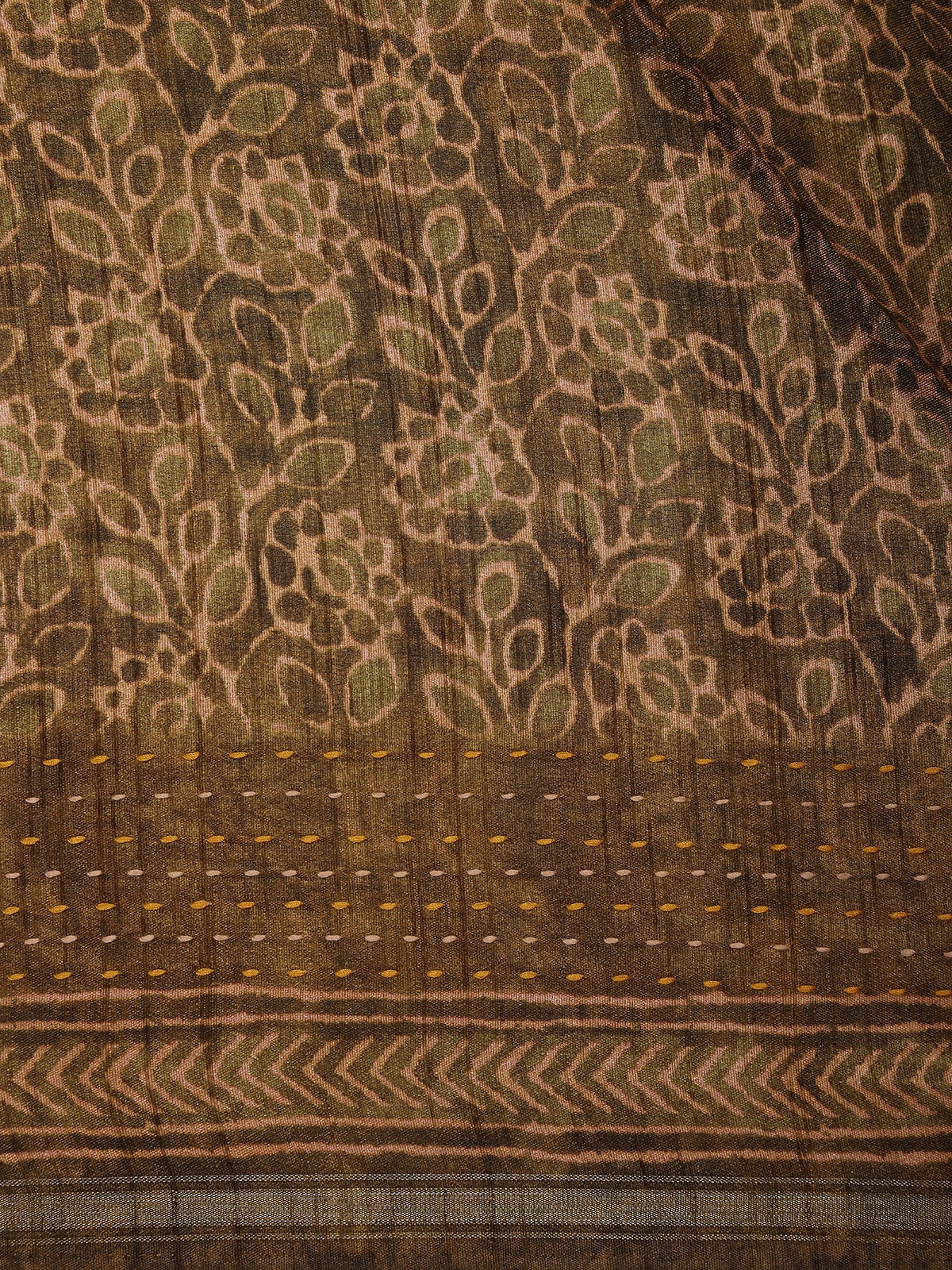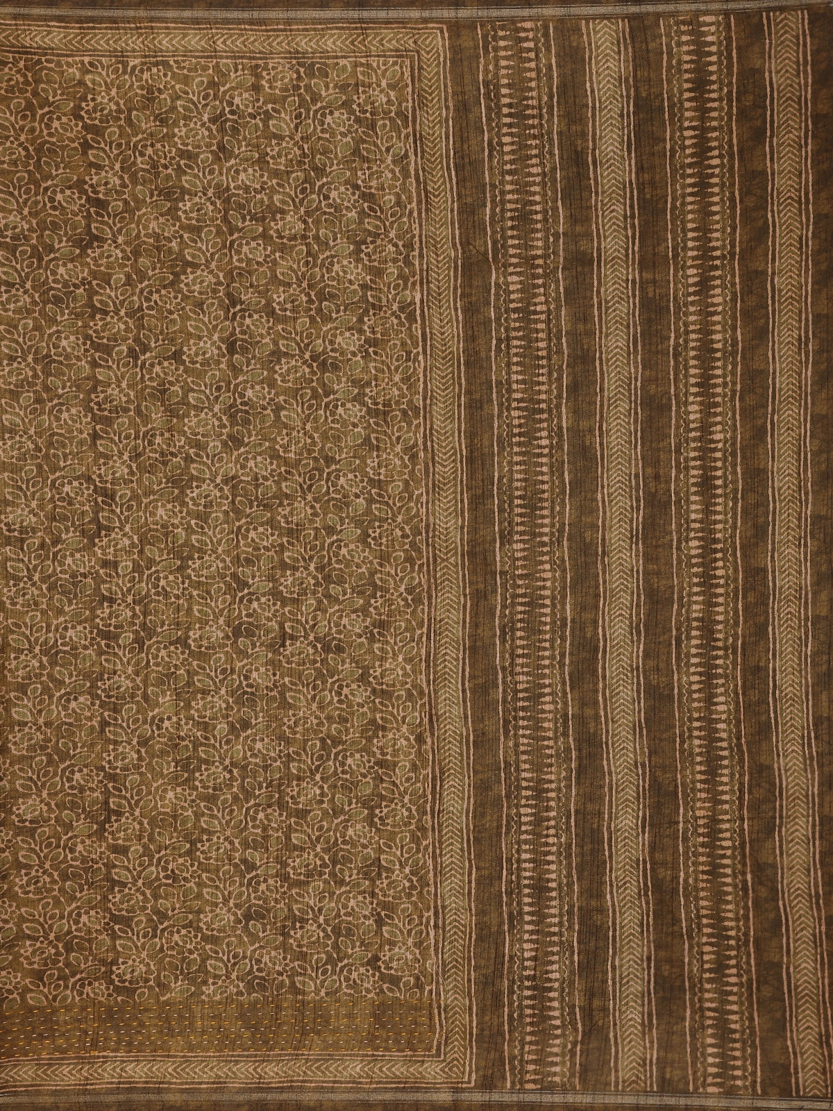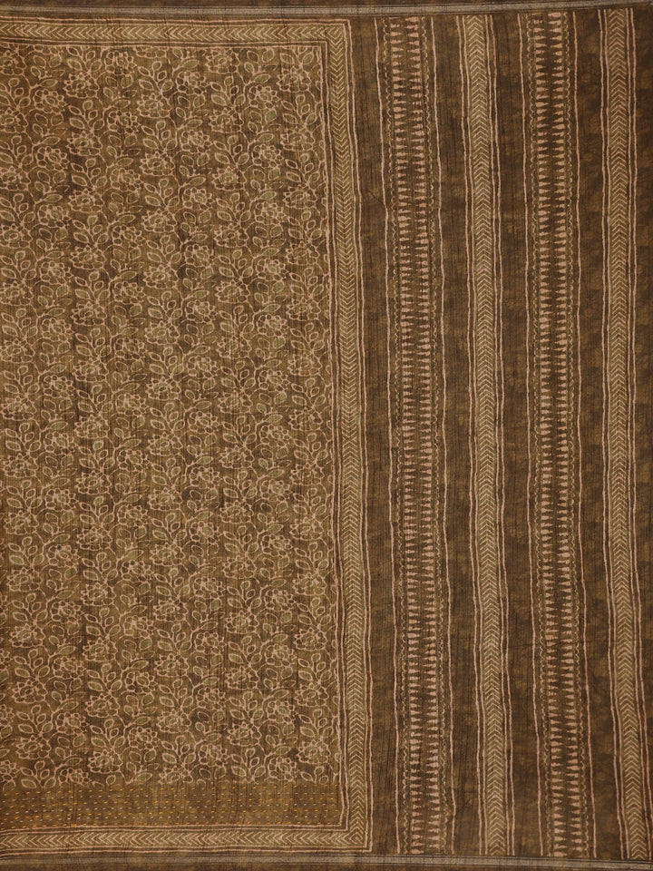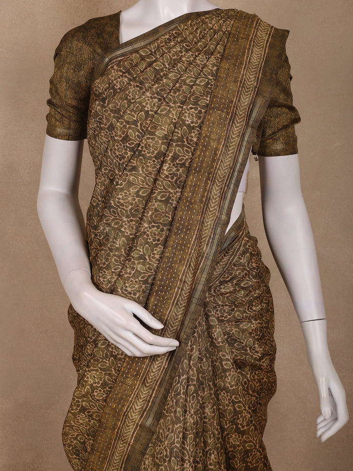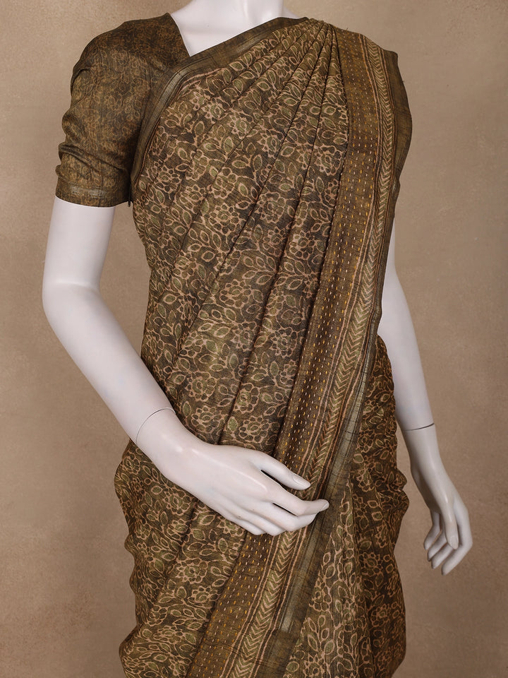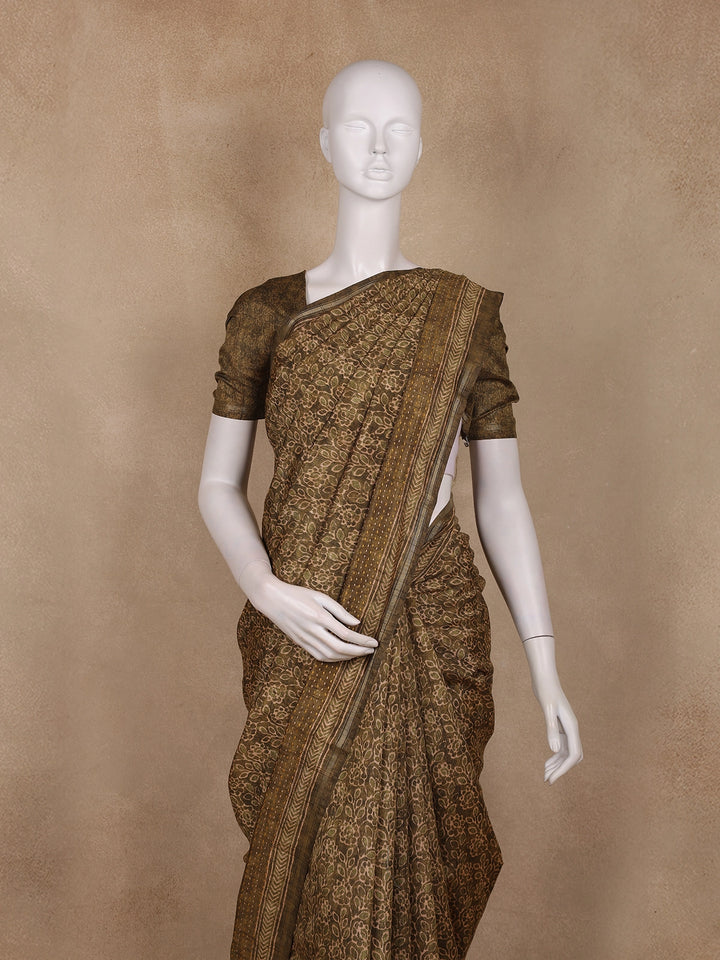 Olive Brown Floral Design Semi Tussar Saree With Embroidery Border