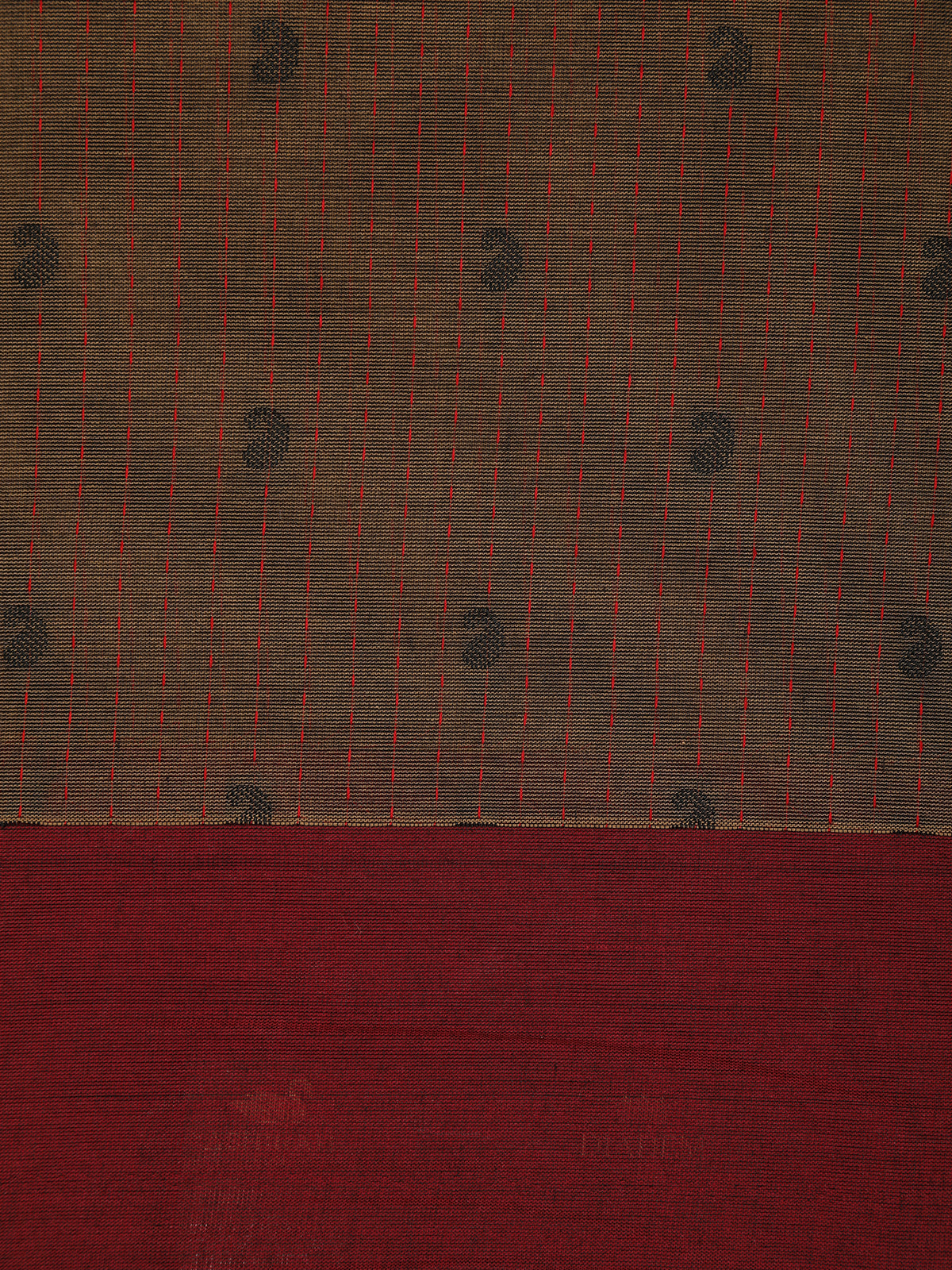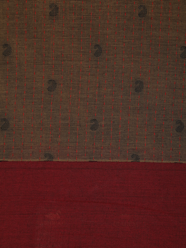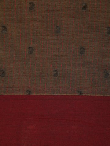 Olive Brown Paisley Butta Woven Design Cotton Saree with Contrast Border