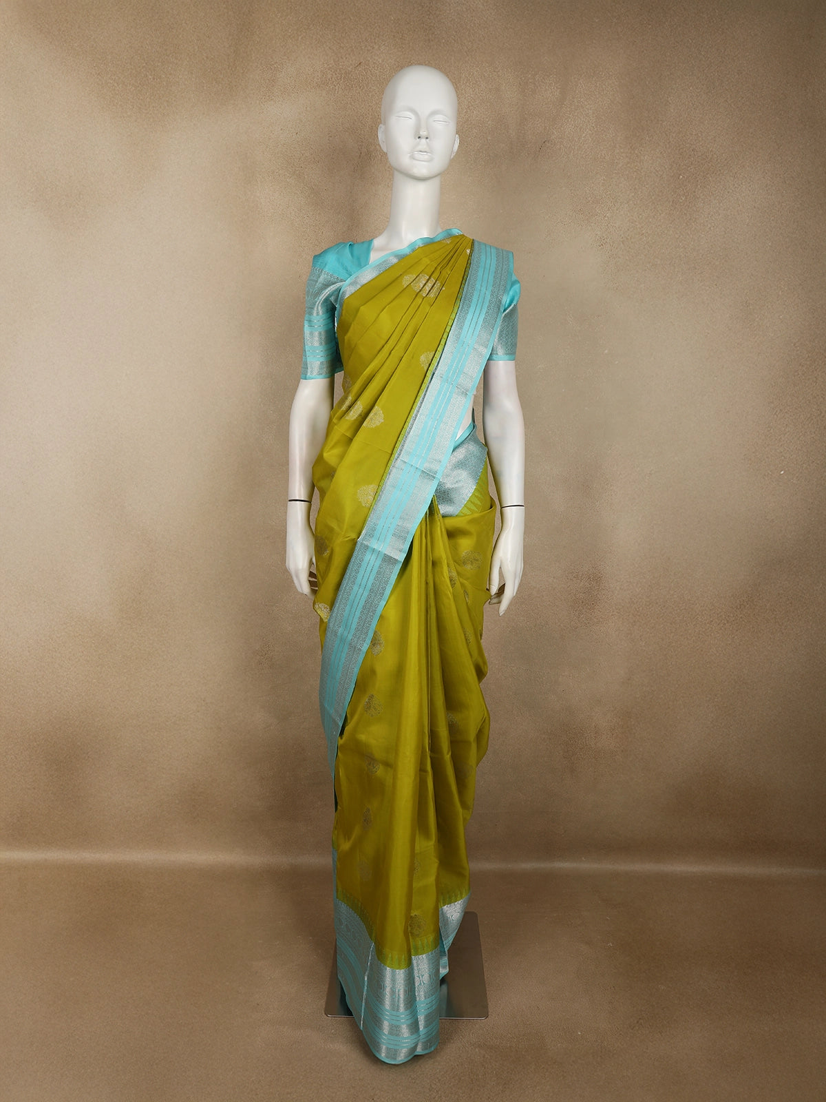 Perfectly suited for weddings, festive celebrations, traditional ceremonies, and special occasions, this saree stands out with its unique color palette and classic zari artistry. Pair it with gold jewellery for a traditional statement or minimal accents for a refined, contemporary look — a truly versatile addition to any silk saree collection.