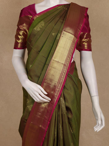 Olive Green Butta Woven Design Pure Kanchipuram Silk Saree