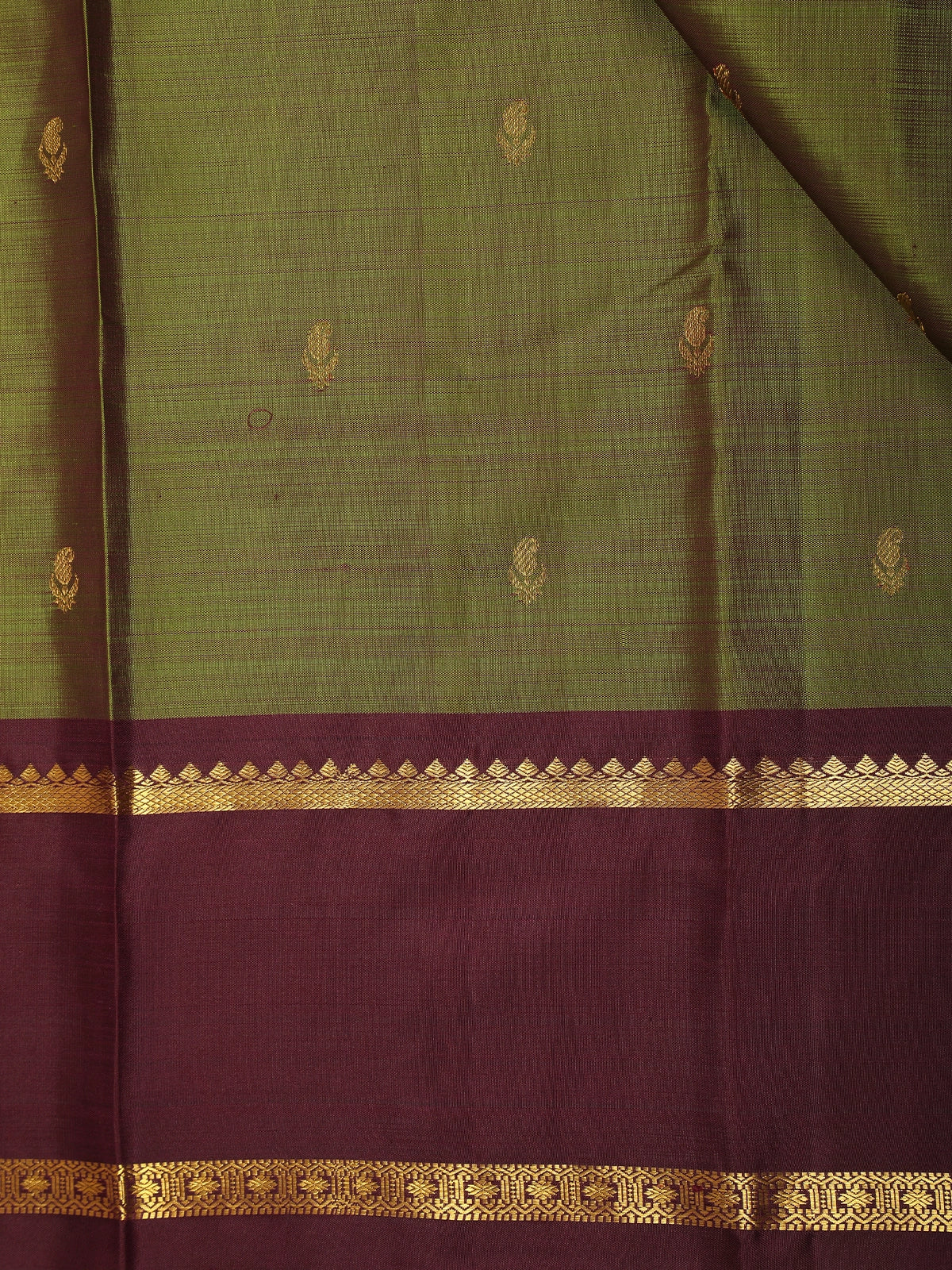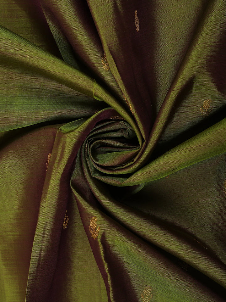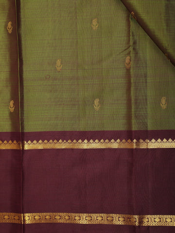 Olive Green Butta Woven Kanchipuram Silk Saree with Maroon Zari Border