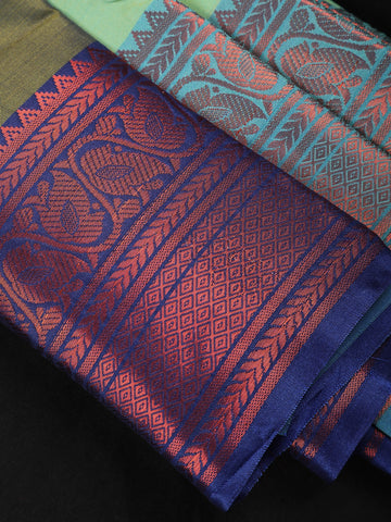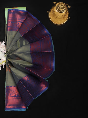 Olive Green Butta Woven Soft Silk Saree with Navy Blue Contrast Border