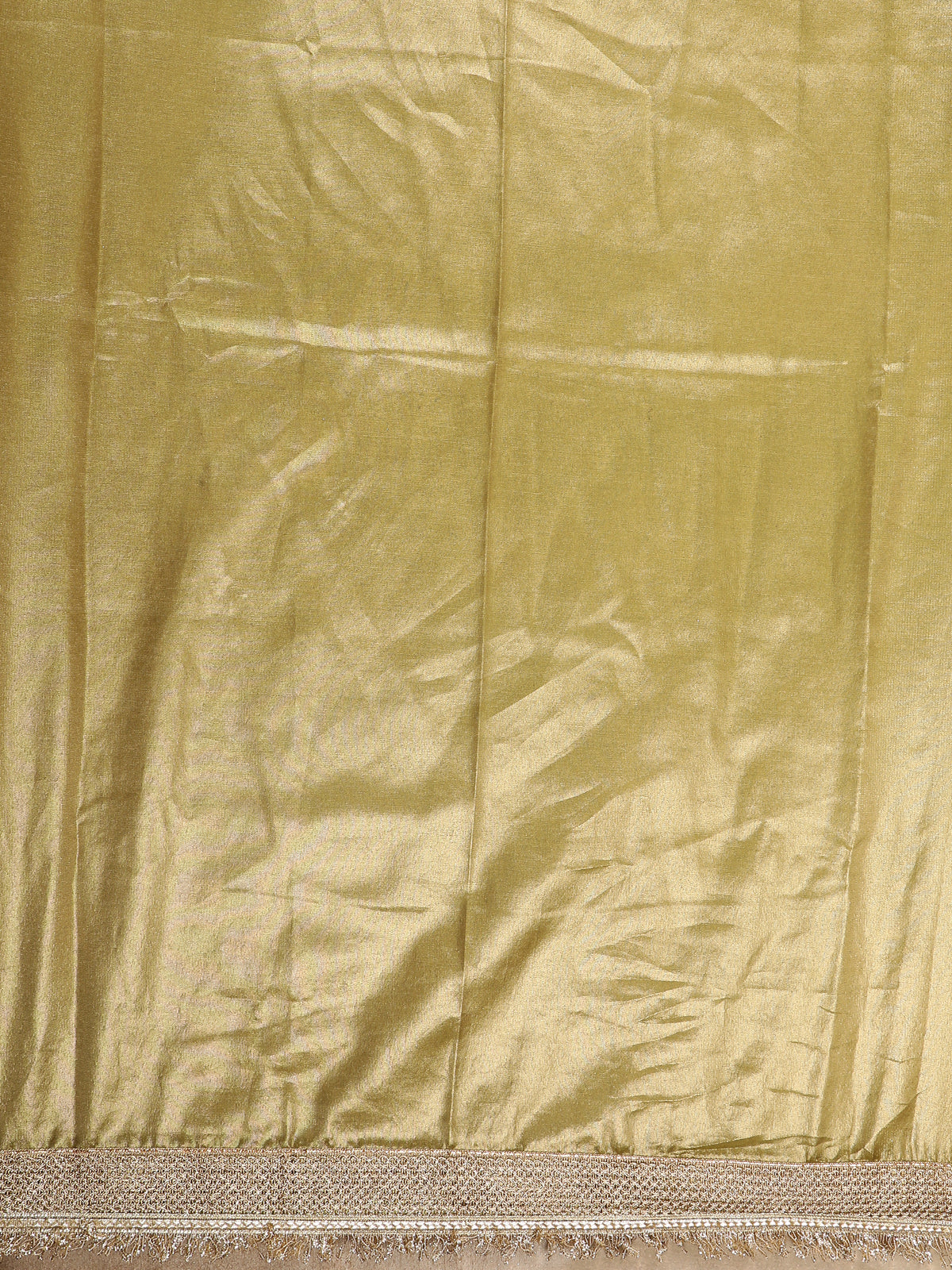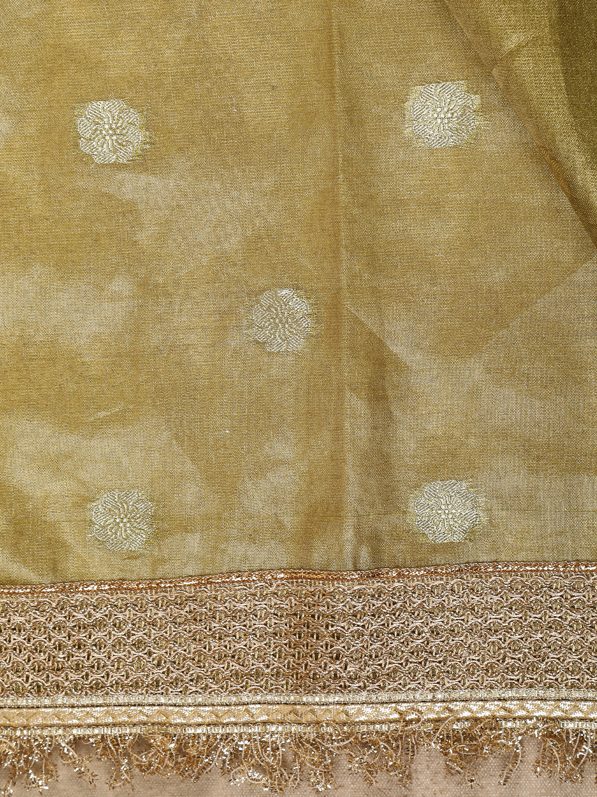Olive Green Floral Butta Design Tissue Saree with Designer Lace Border