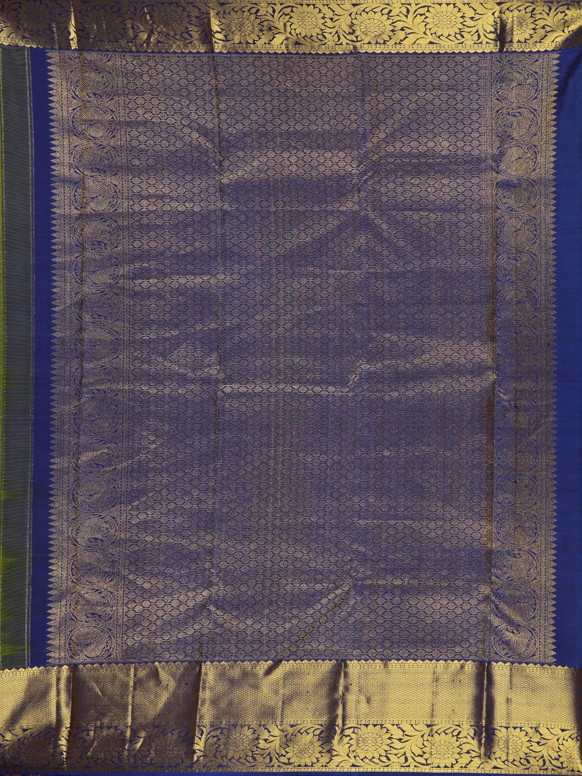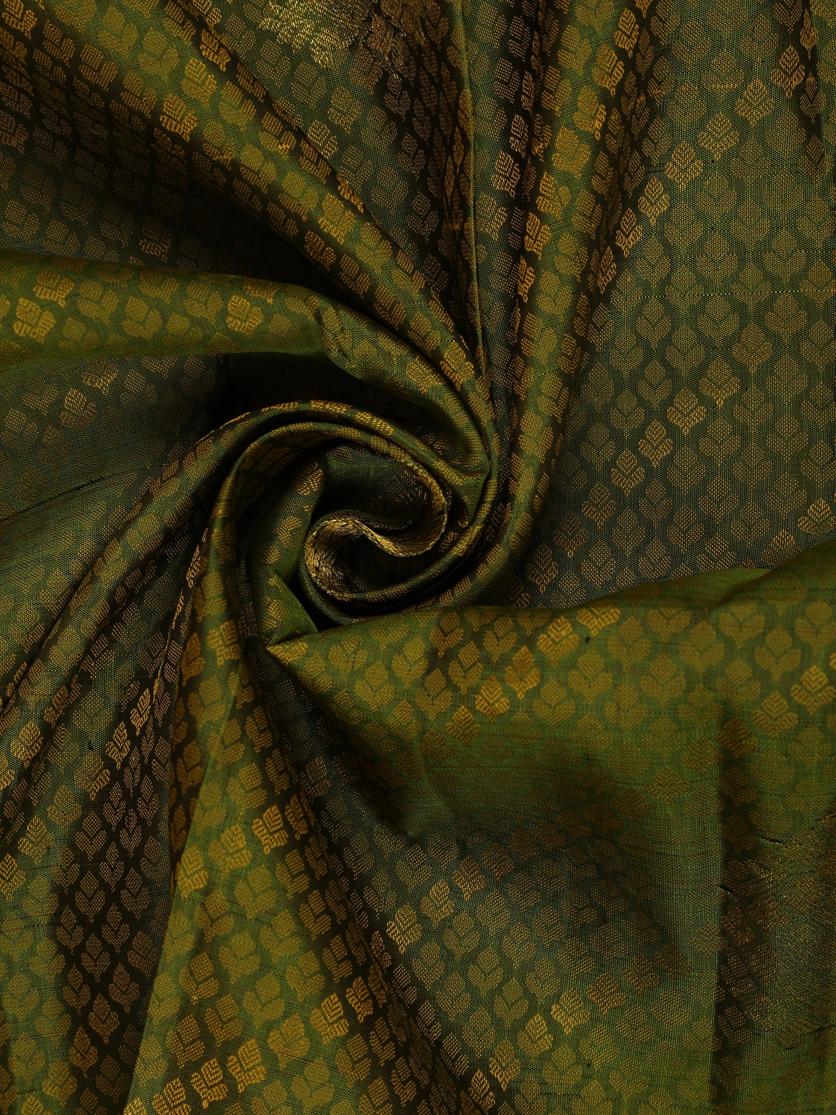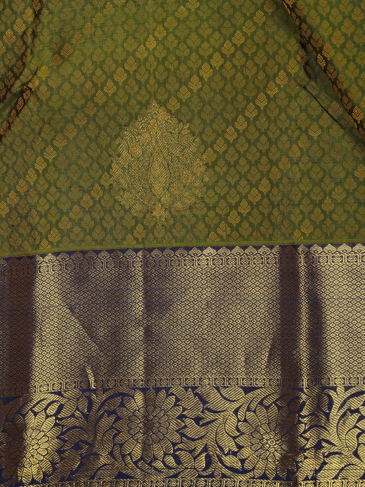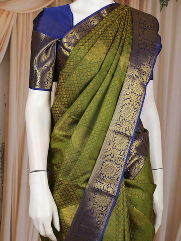 Olive Green Floral Design Pure Kanchipuram Silk Saree