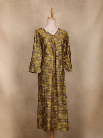 Olive Green Floral Printed Design Cotton Kurti