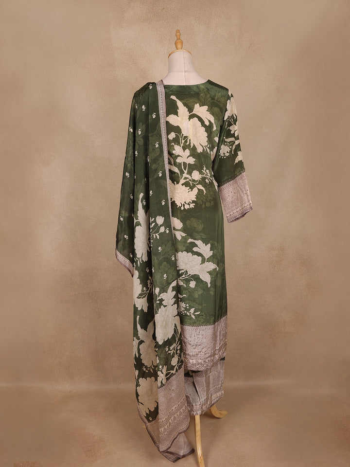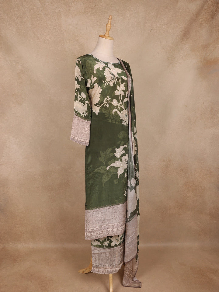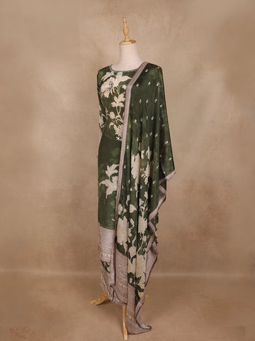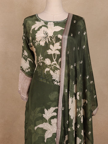 Olive Green Floral Printed Design Cotton Straight Cut Salwar Suit