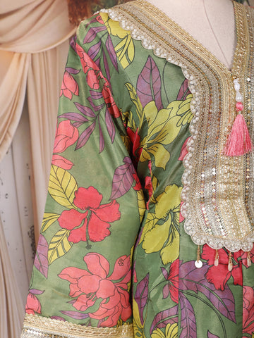 A truly captivating piece, it blends vibrant prints, soft shimmer, and intricate embellishments — ideal for the woman who loves to celebrate tradition with effortless elegance.