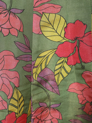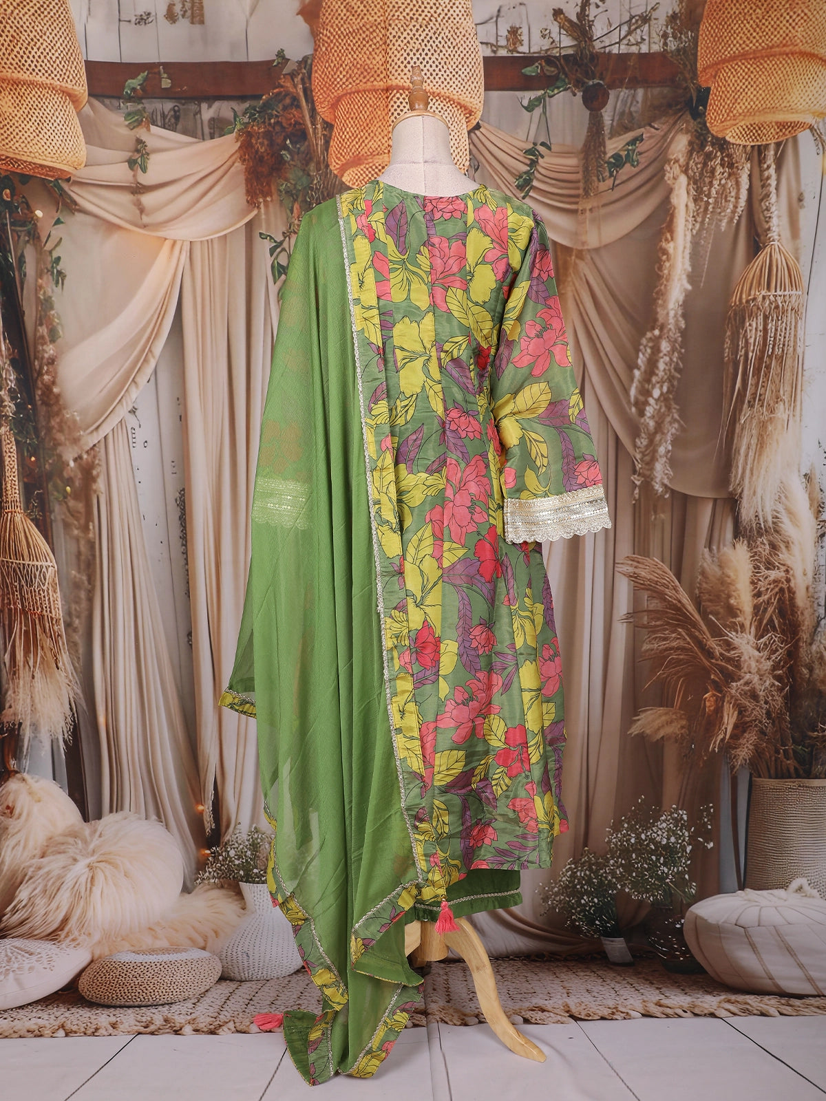 Olive Green Floral Printed Design Tissue Silk Anarkali Salwar Suit