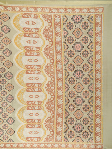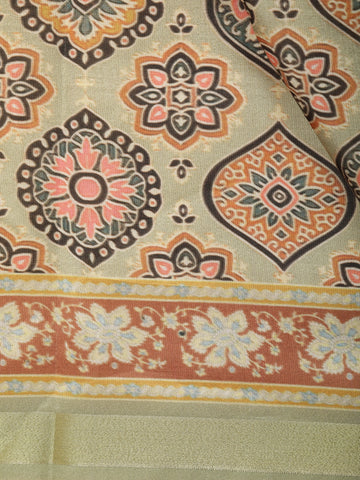 Olive Green Kalamkari Printed Semi Silk Saree with Contrast Border