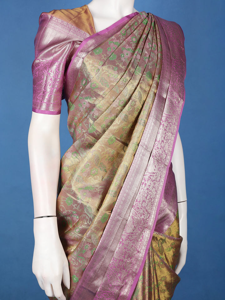 Olive Green Paisley Woven Design Pure Kanchipuram Silk Saree