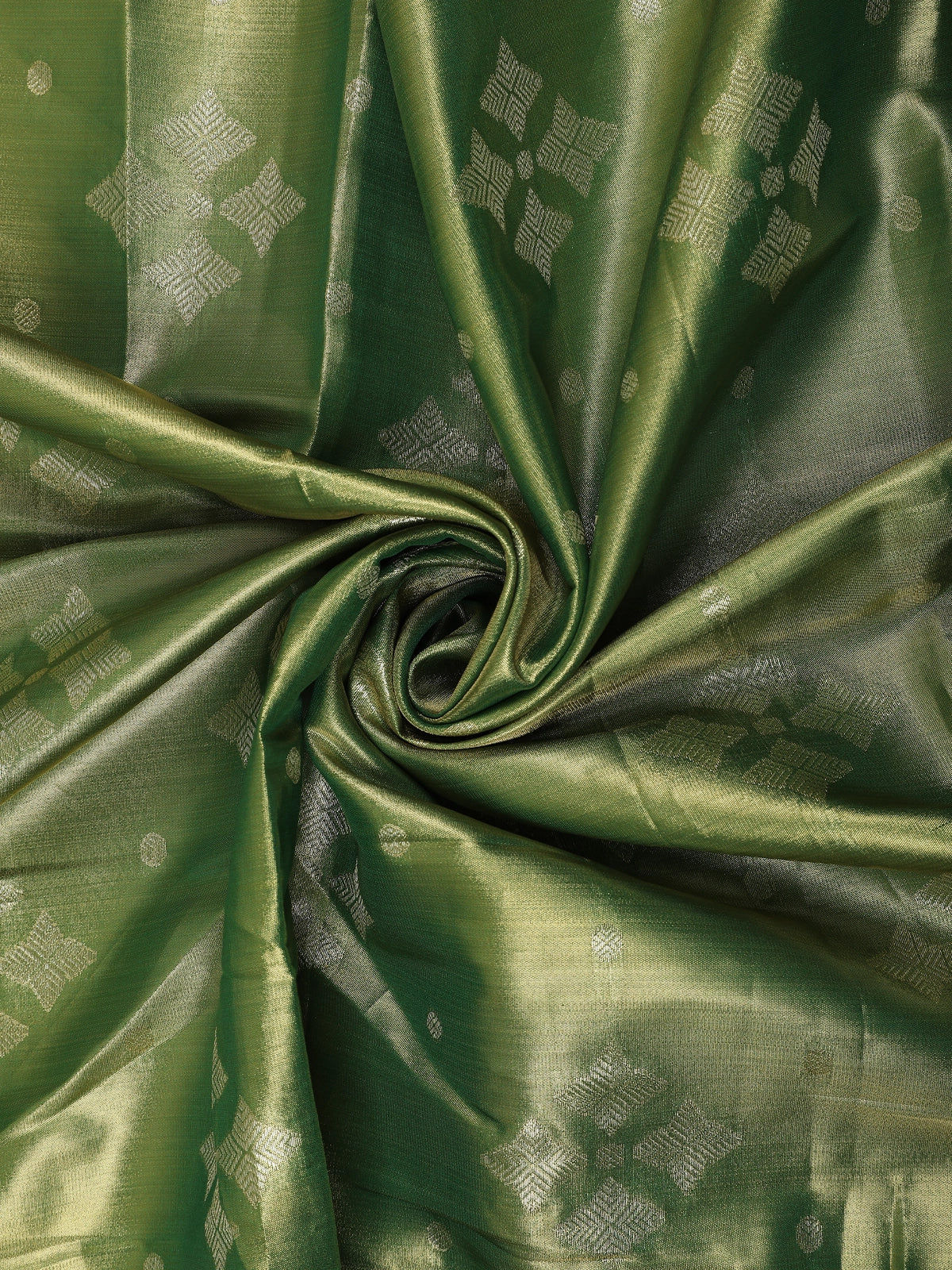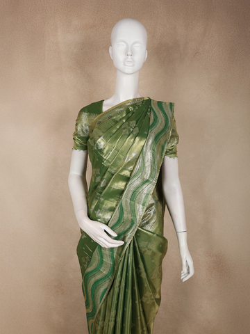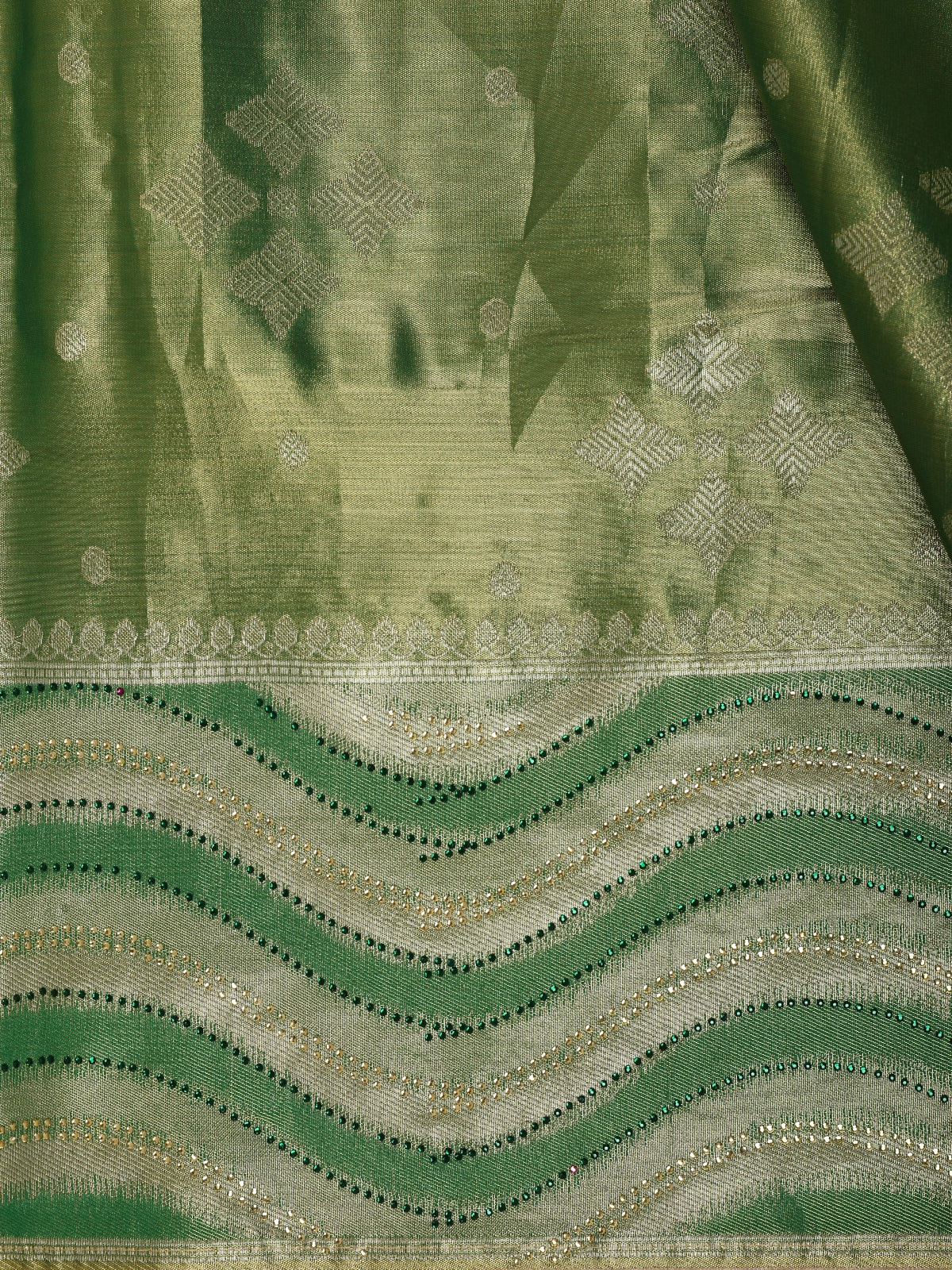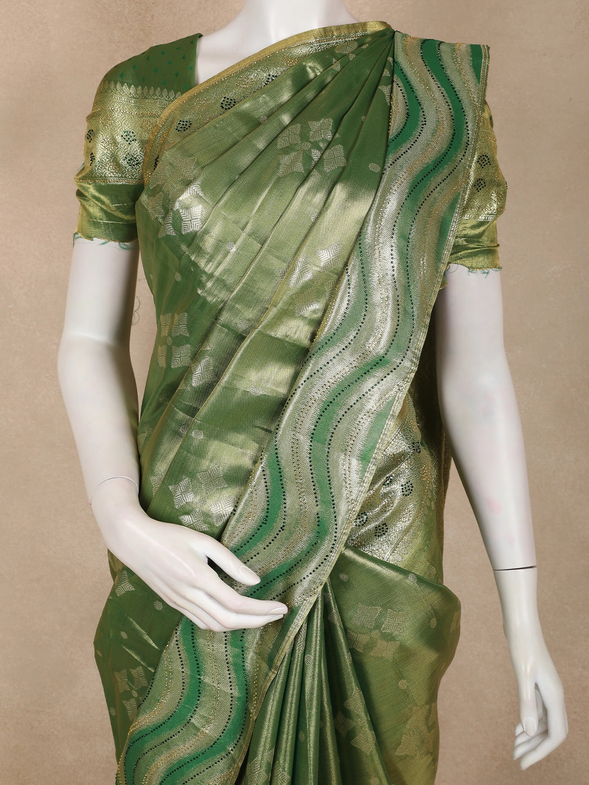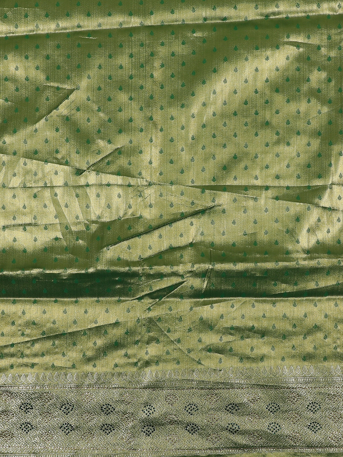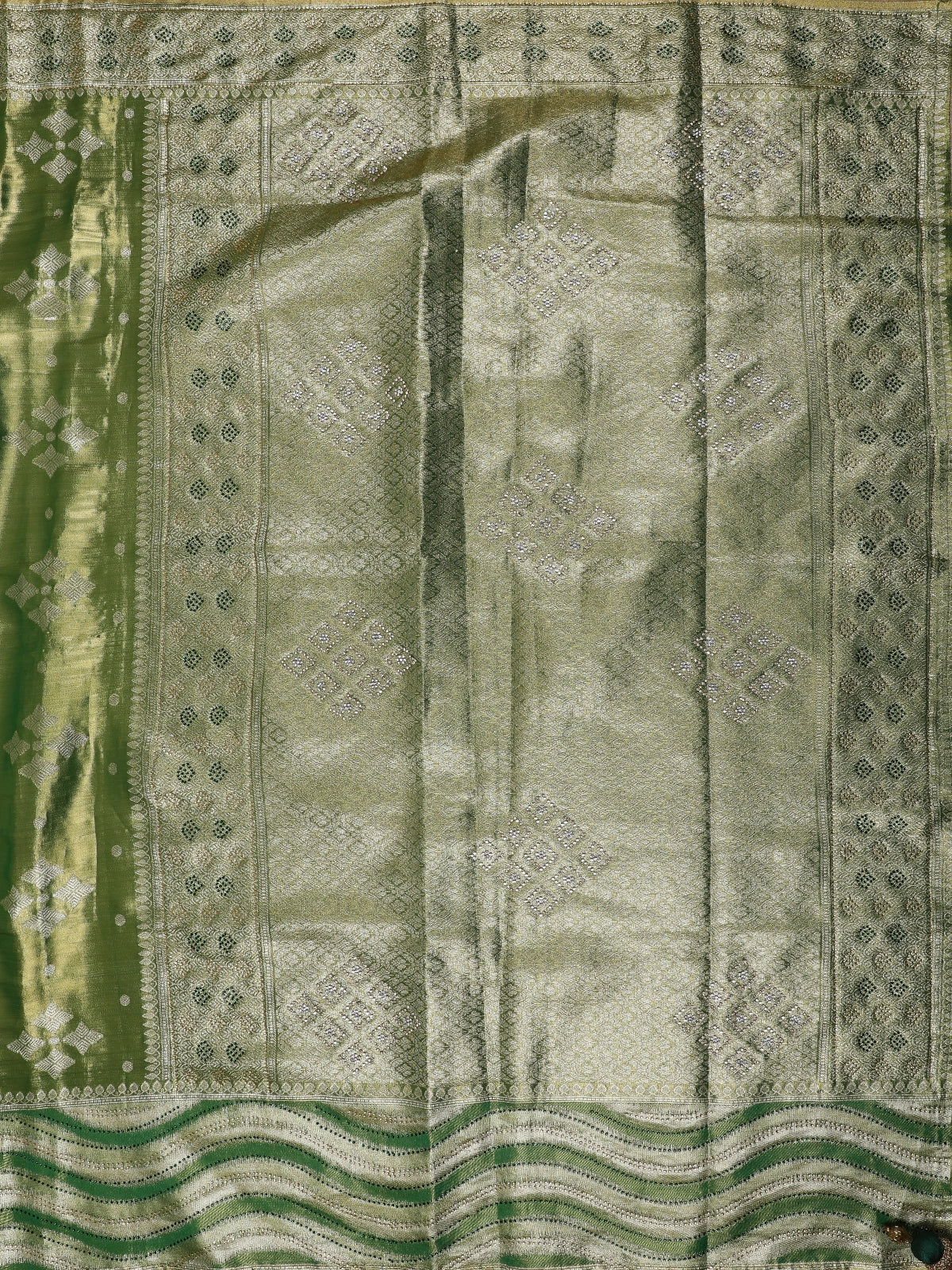 Olive Green Butta Zari Woven Design Tissue Designer Saree with Designer Border