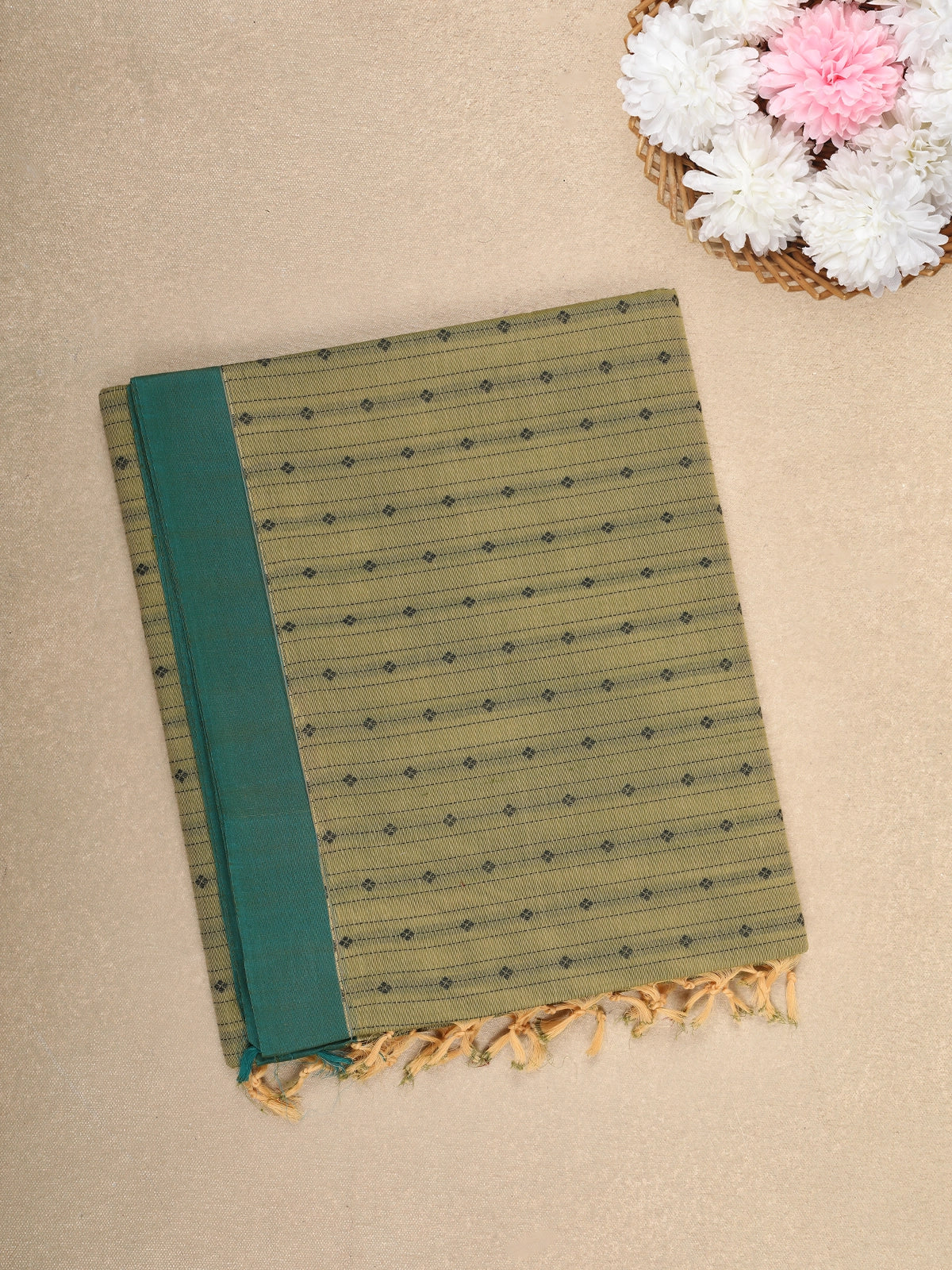 Olive Green Stripes Design Cotton Saree with Contrast Green Border