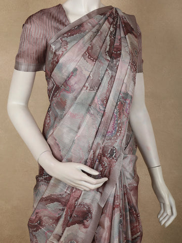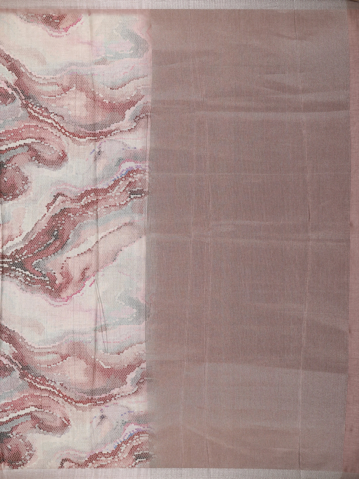 Onion Pink Abstract Printed Design Semi Tussar Fancy Saree