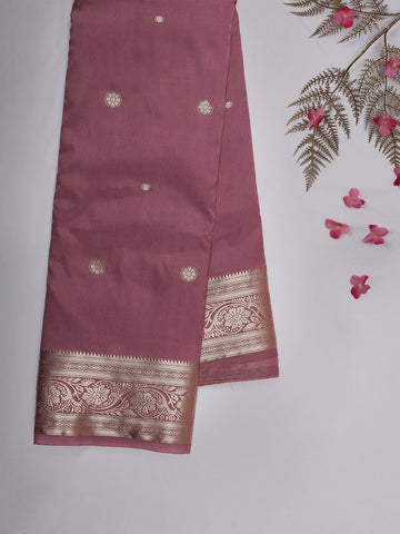 Onion Pink Floral Butta Woven Soft Silk Saree with Zari Border