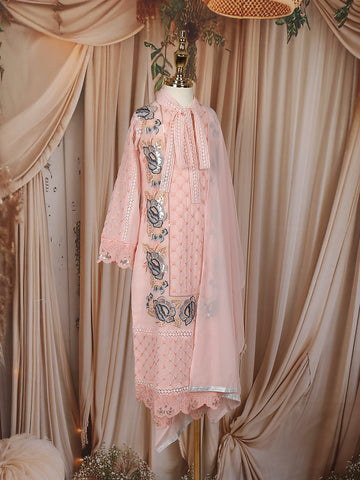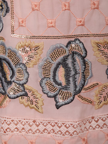 Onion Pink Floral Thread Embroidered Design Georgette Kids Salwar Suit