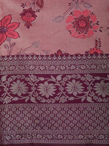 Onion Pink Floral Zari Woven Design Art Silk Saree with Contrast Zari Border