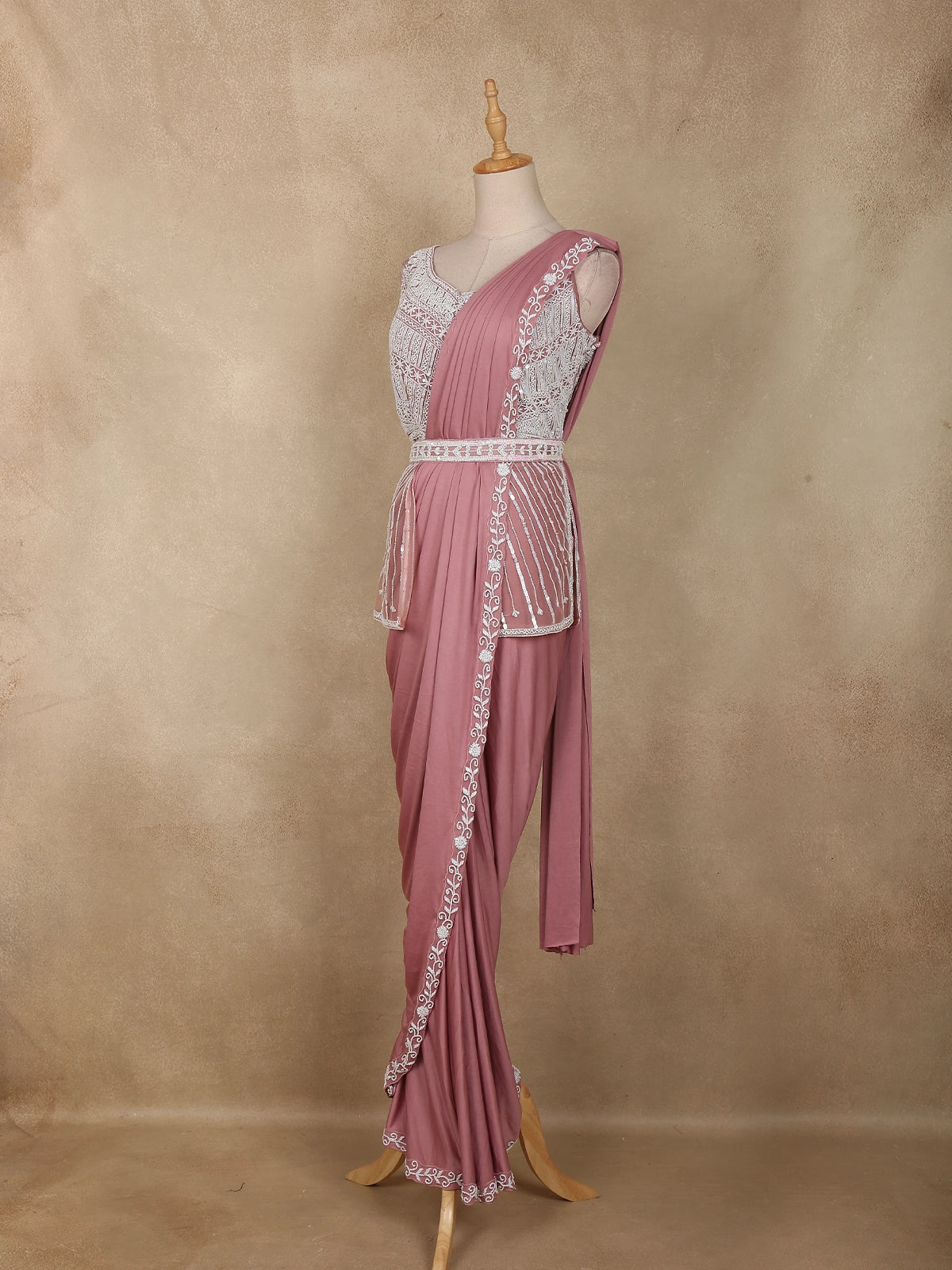 Designed as a ready-to-wear drape, this saree ensures both convenience and charm — no pleating, no tucking, just slip it on and glow with grace.
