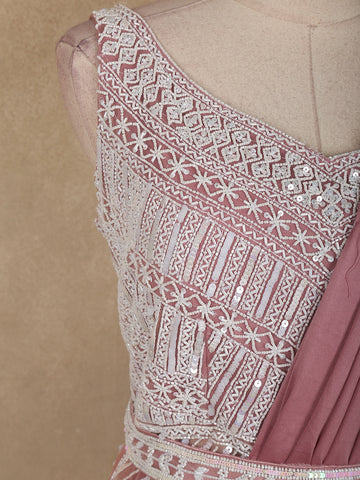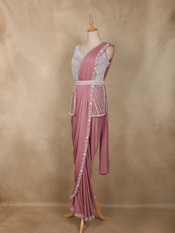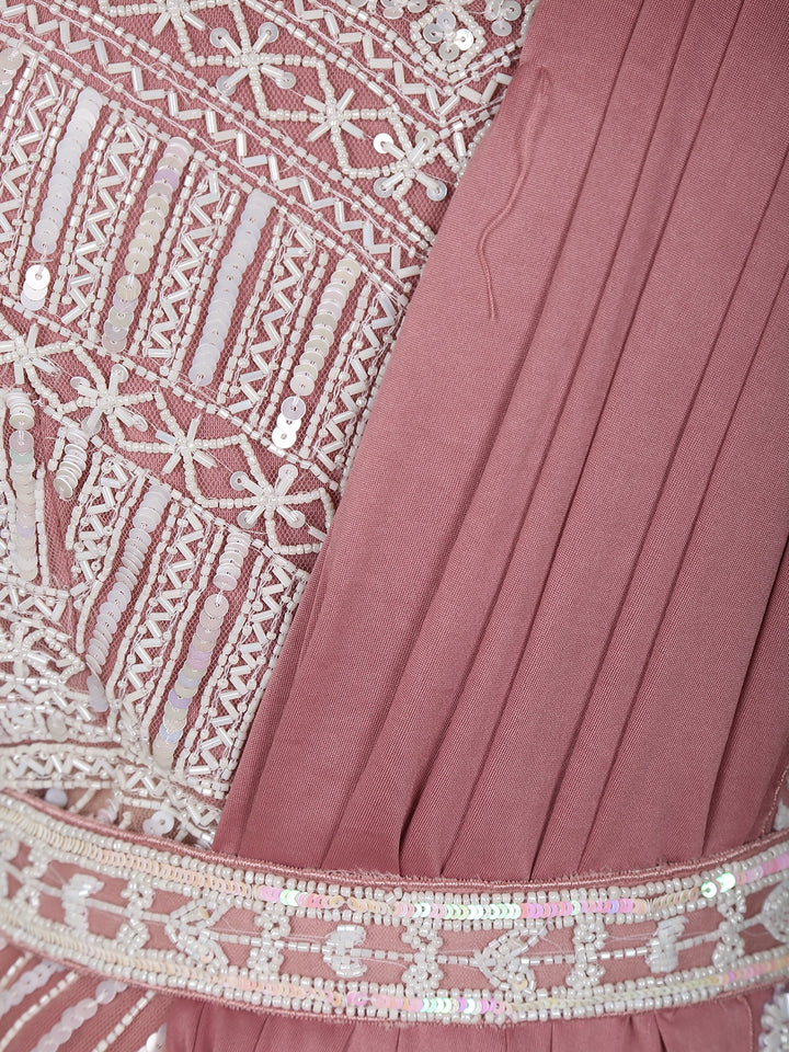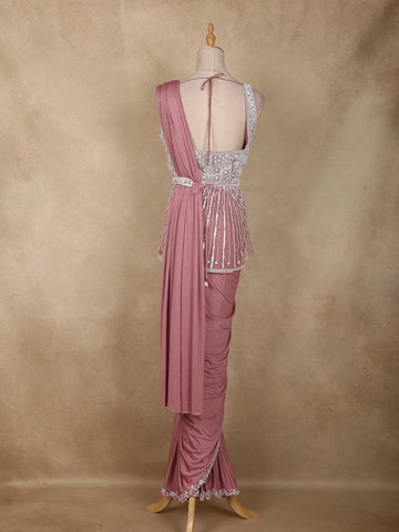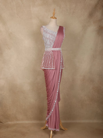 Onion Pink Heavy Sequins Embellished Design Satin Ready To Wear Saree
