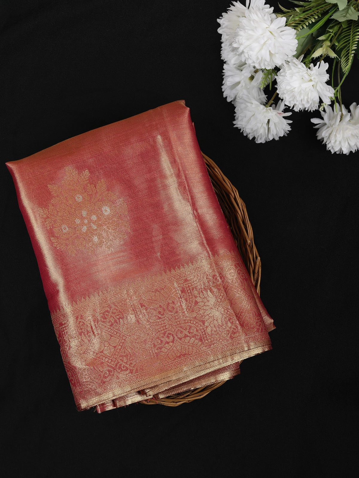 Onion Pink Leaf Zari Woven Design Tissue Silk Fancy Saree with Zari Border