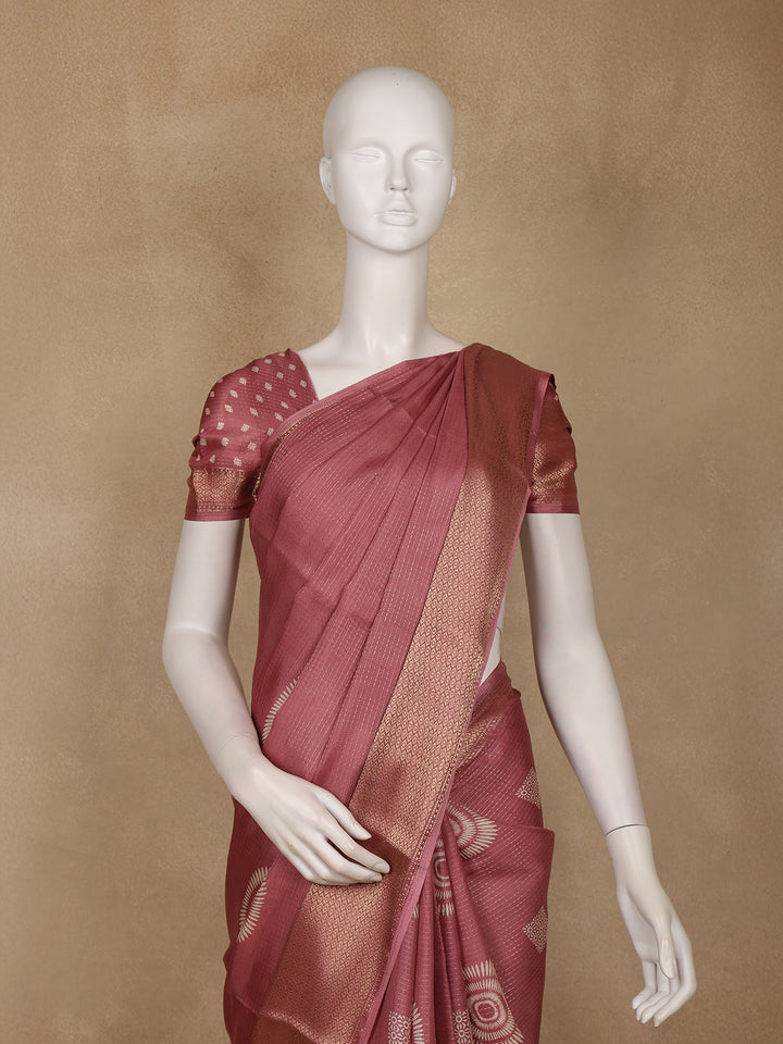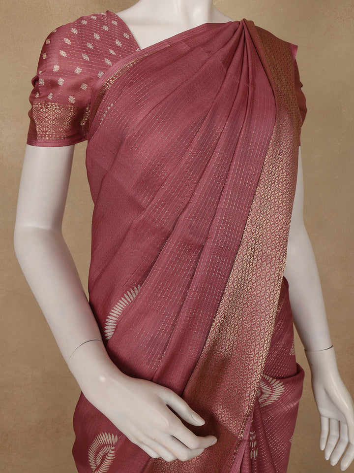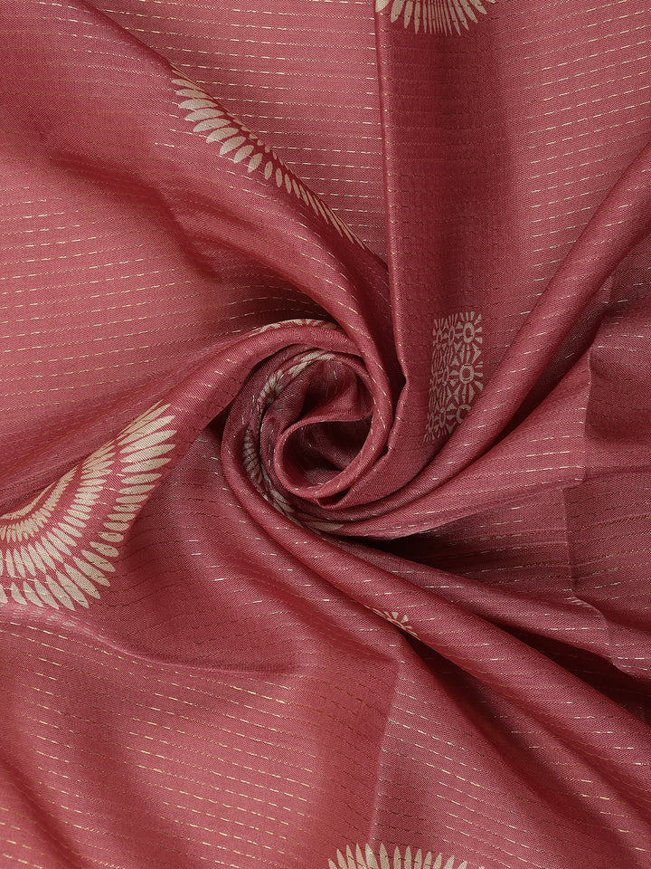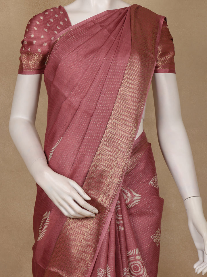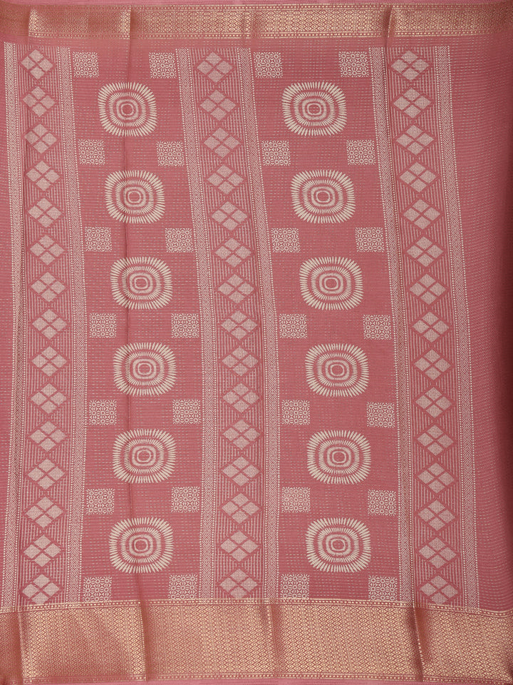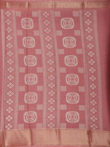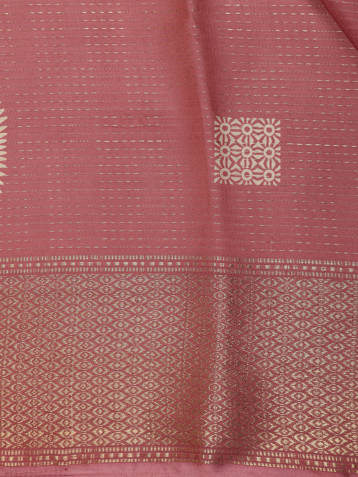 Step into refined simplicity with this Onion Pink Stripes Woven Cotton Saree, blending everyday comfort with traditional aesthetics. The subtle striped texture enhances its graceful appeal, while the golden zari border adds a hint of festive sophistication. Its matching blouse and pallu complete the look, making it a perfect choice for workwear, casual gatherings, or understated festive occasions.
