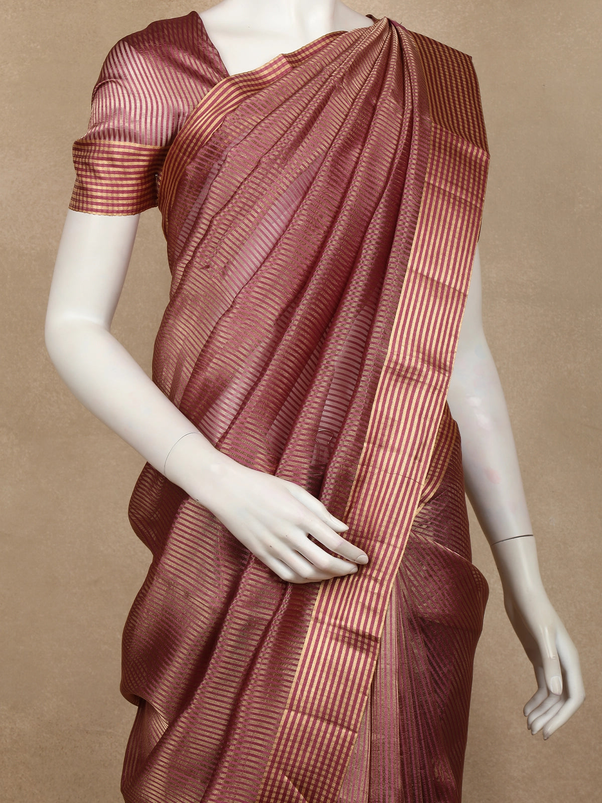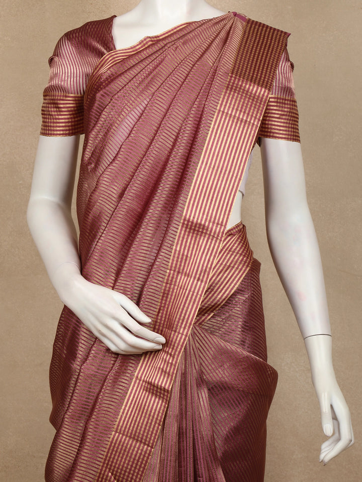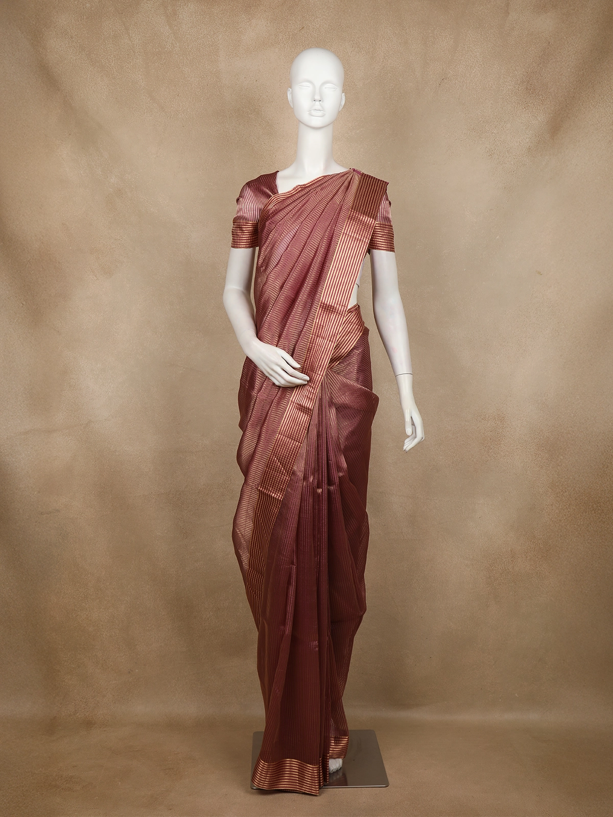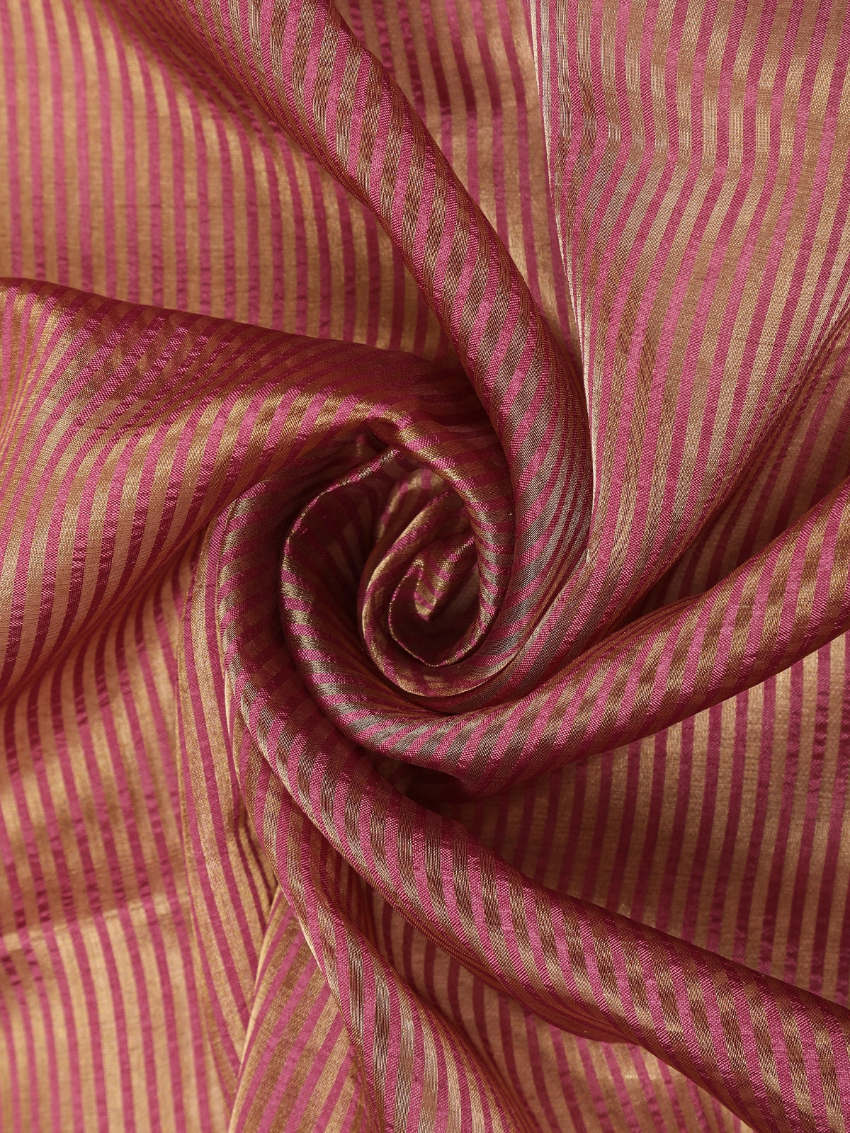Step into elegance with this Onion Pink Stripes Design Organza Saree, crafted to bring a perfect balance of modern charm and traditional finesse. The delicate organza fabric offers a sheer and graceful drape, while the woven stripe pattern adds a stylish texture throughout the saree. Accented with a designer border, this saree carries a subtle shimmer that enhances its festive appeal.