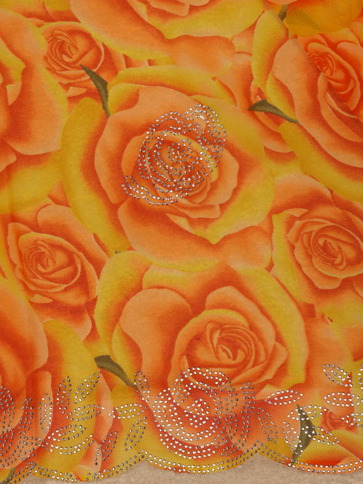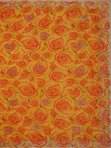 Bring a touch of sunshine to your wardrobe with this Orange and Yellow Floral Printed Design Chiffon Saree, a radiant ensemble that captures the beauty of blooming roses in vibrant hues. Crafted from lightweight chiffon, this saree flows gracefully with every movement, making it a perfect choice for casual gatherings, festive days, or elegant daytime outings.