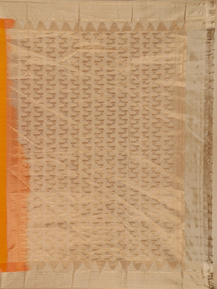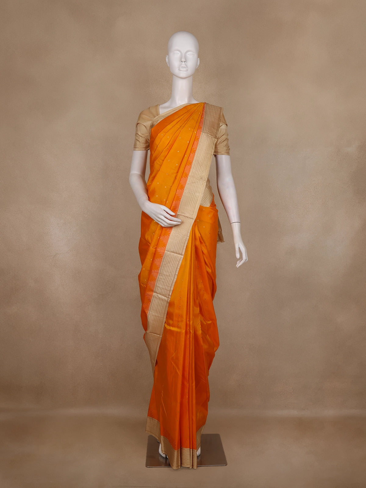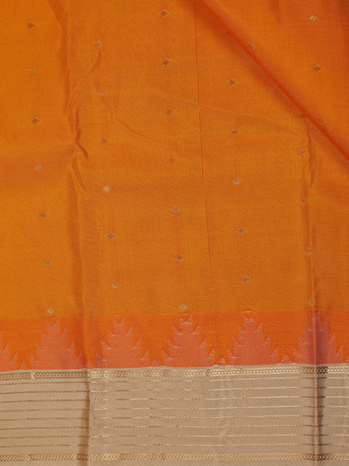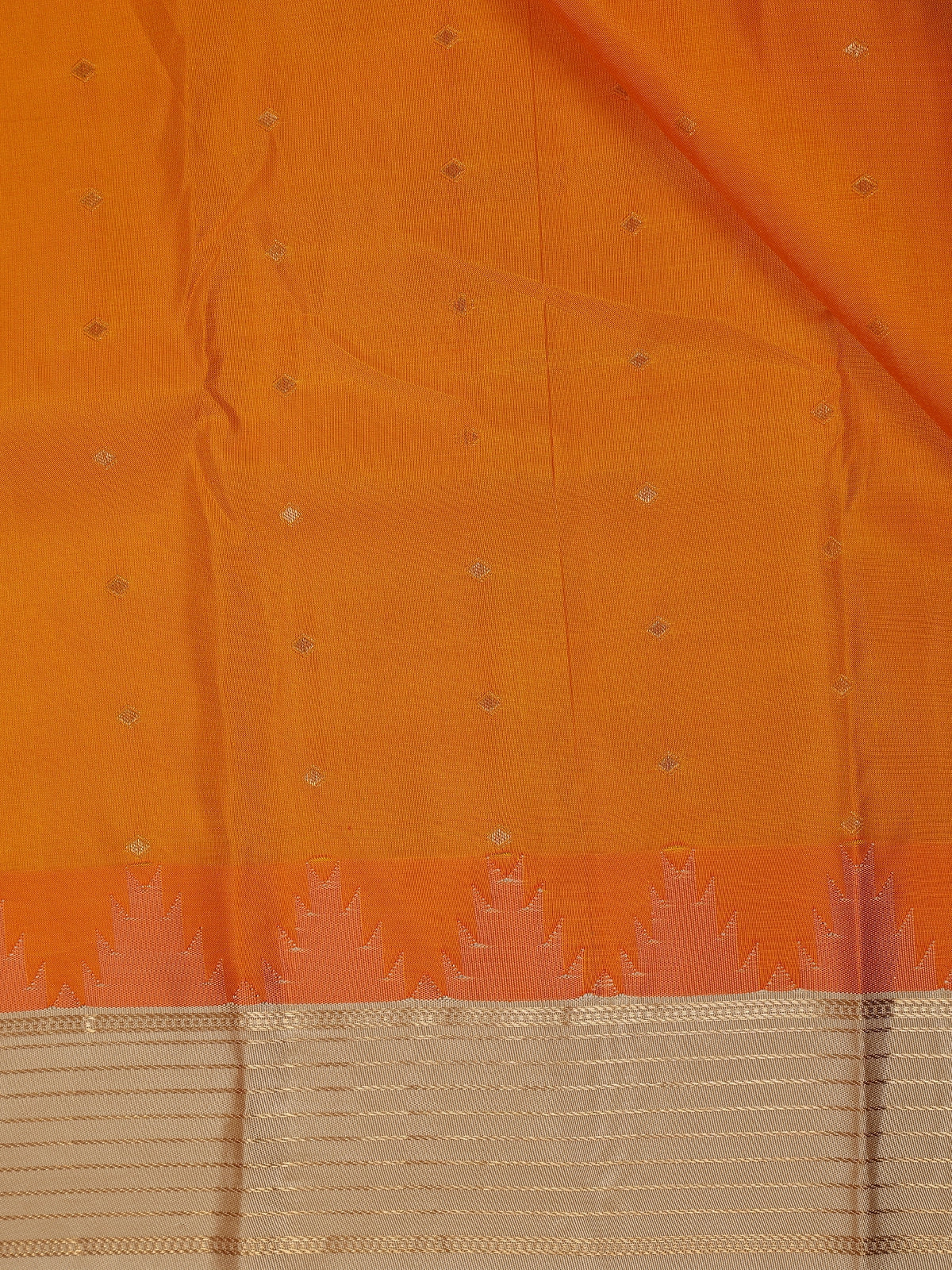 Orange Butta Woven Design Pure Kanchipuram Silk Saree with Golden Zari Border