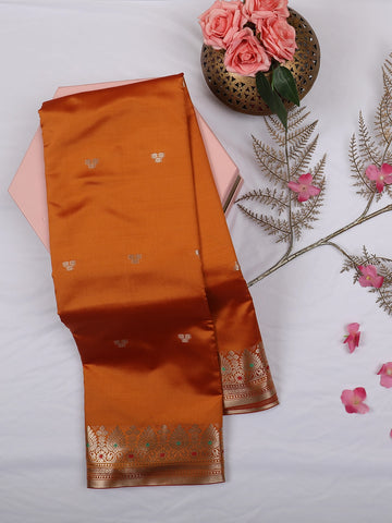 Orange Butta Woven Design Soft Silk Saree with Silver Zari Floral Border
