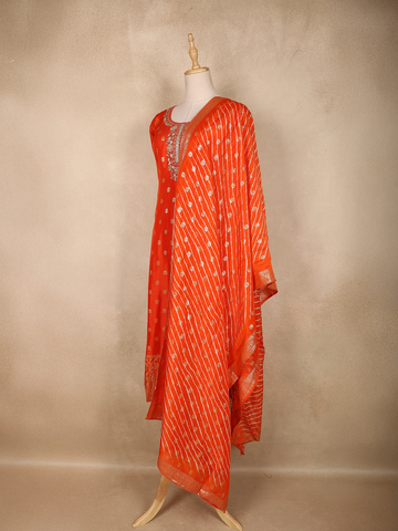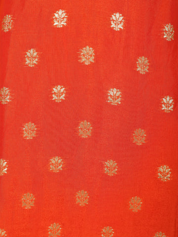 Elevate your festive wardrobe with this Orange Banarasi Silk Straight Cut Salwar Suit, a perfect blend of traditional craftsmanship and timeless elegance. Crafted from rich Banarasi silk, the kurta features an alluring orange hue beautifully enhanced with delicate butta zari woven motifs, lending it a regal and festive charm.