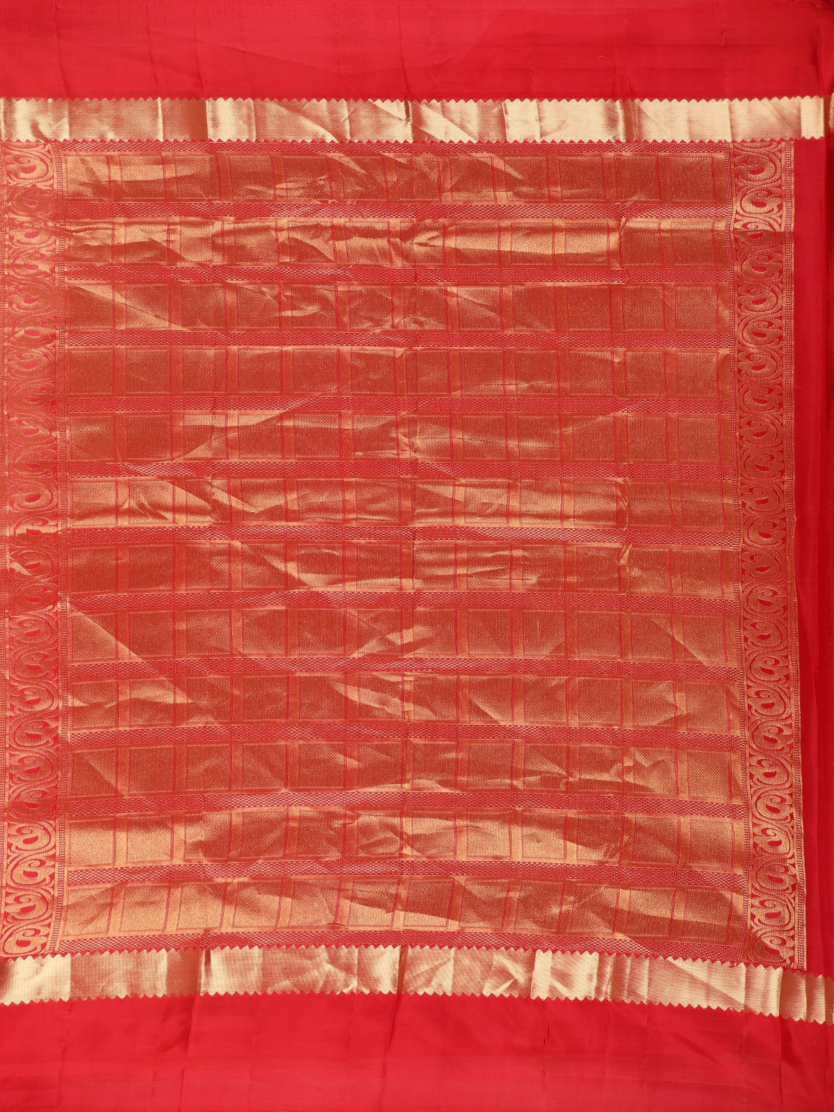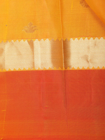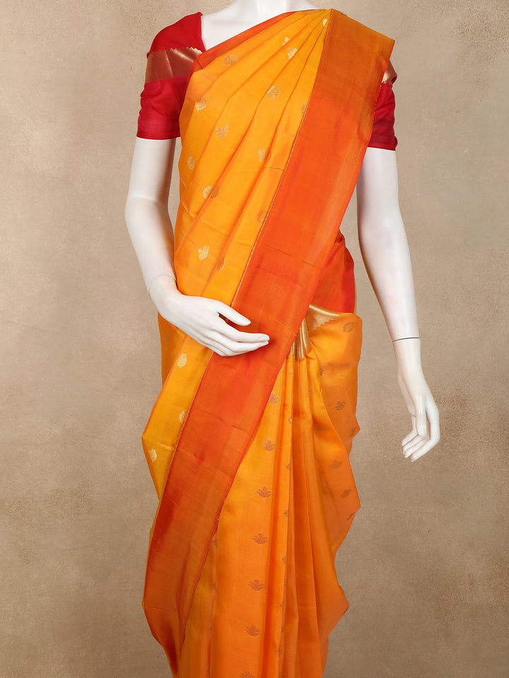 Orange Floral Butta Woven Kanchipuram Silk Saree with Zari Border