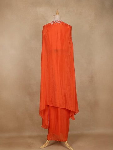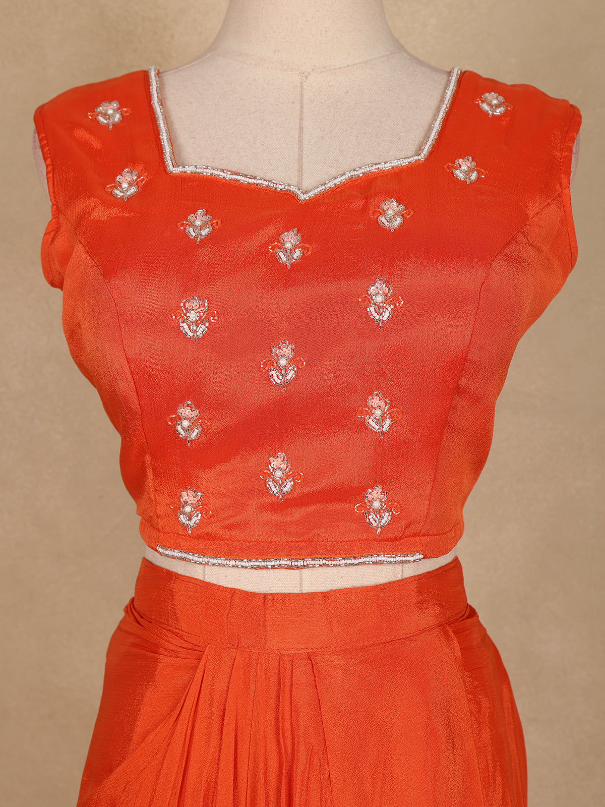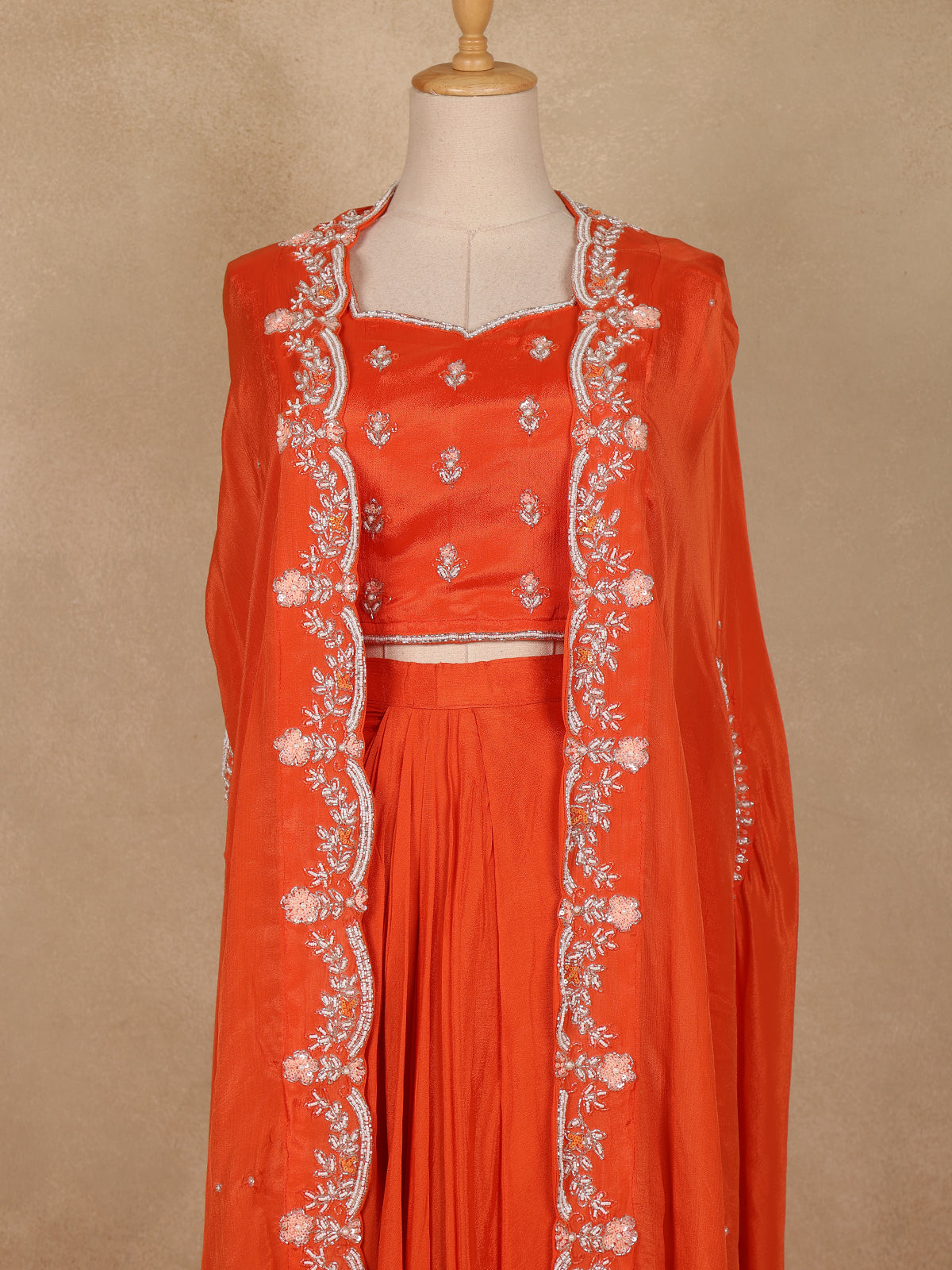 Orange Floral Embroidered Design Georgette Skirt Top with Dupatta