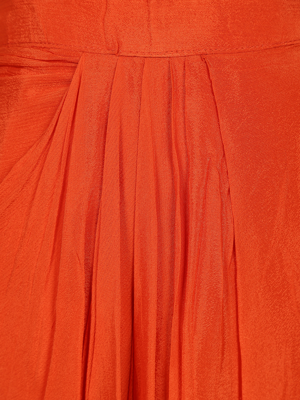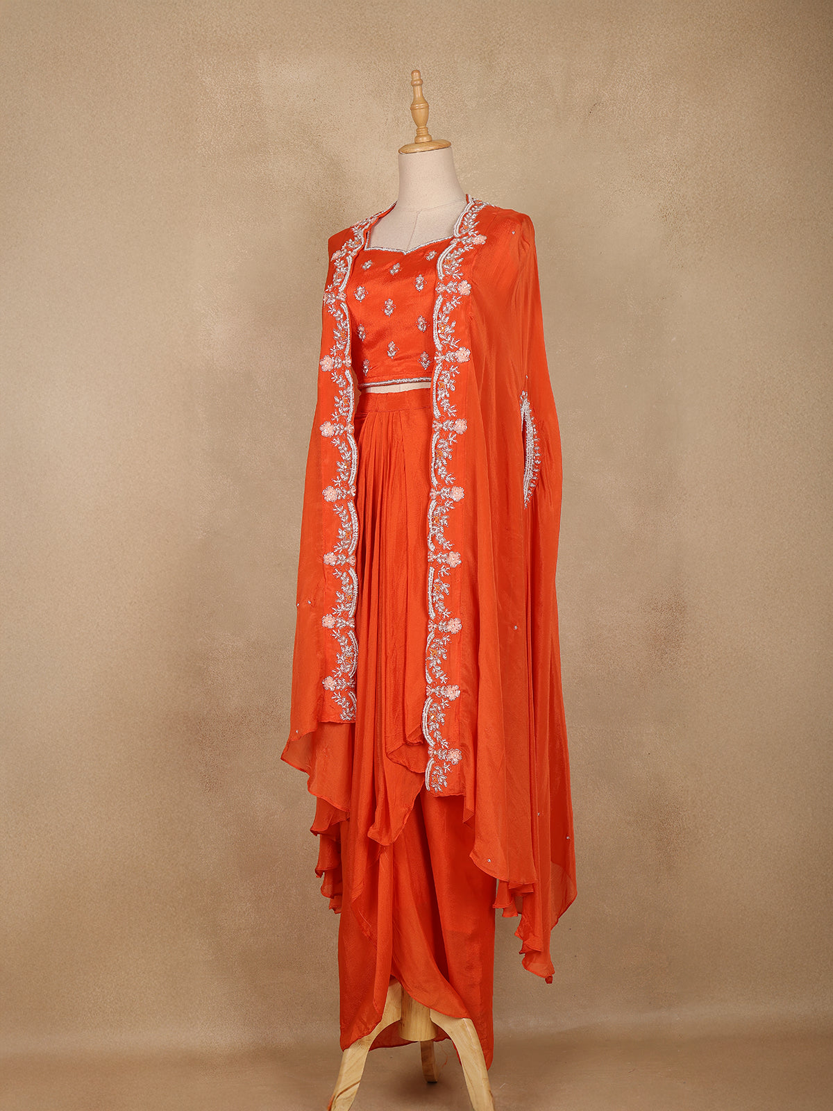 Radiate festive charm in this Orange Floral Embroidered Design Georgette Skirt Top with Dupatta, a captivating ensemble that beautifully blends vibrance and elegance. Crafted from lightweight georgette fabric, this outfit offers a fluid drape and effortless grace, making it perfect for parties, weddings, and celebratory occasions. The lively orange hue brings a burst of brightness, while the intricate floral embroidery adds depth, texture, and timeless artistry to the look.