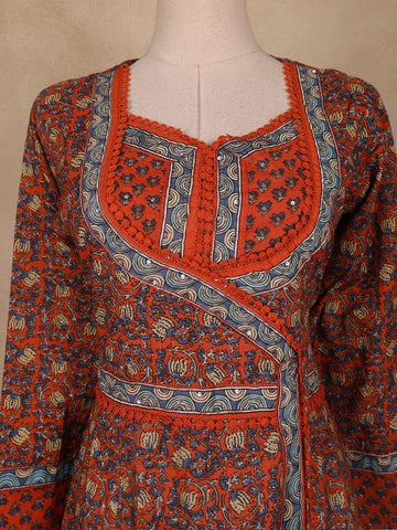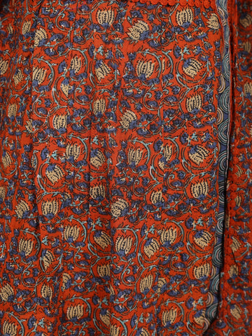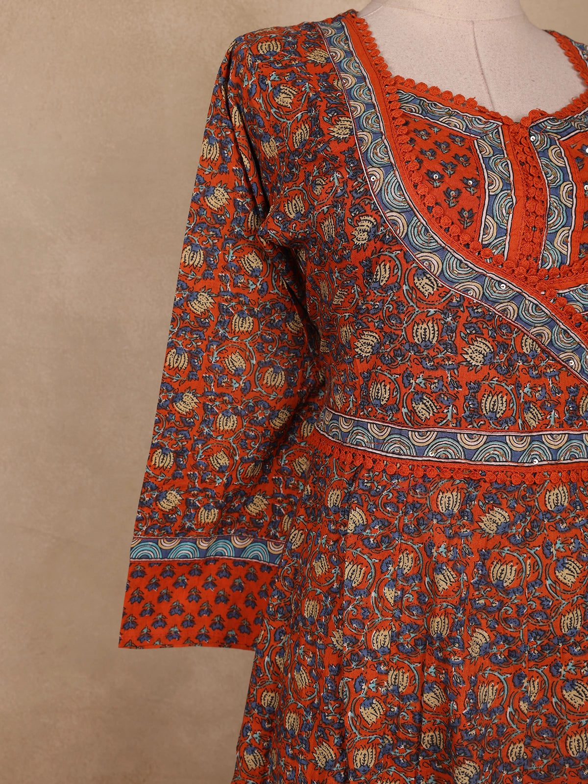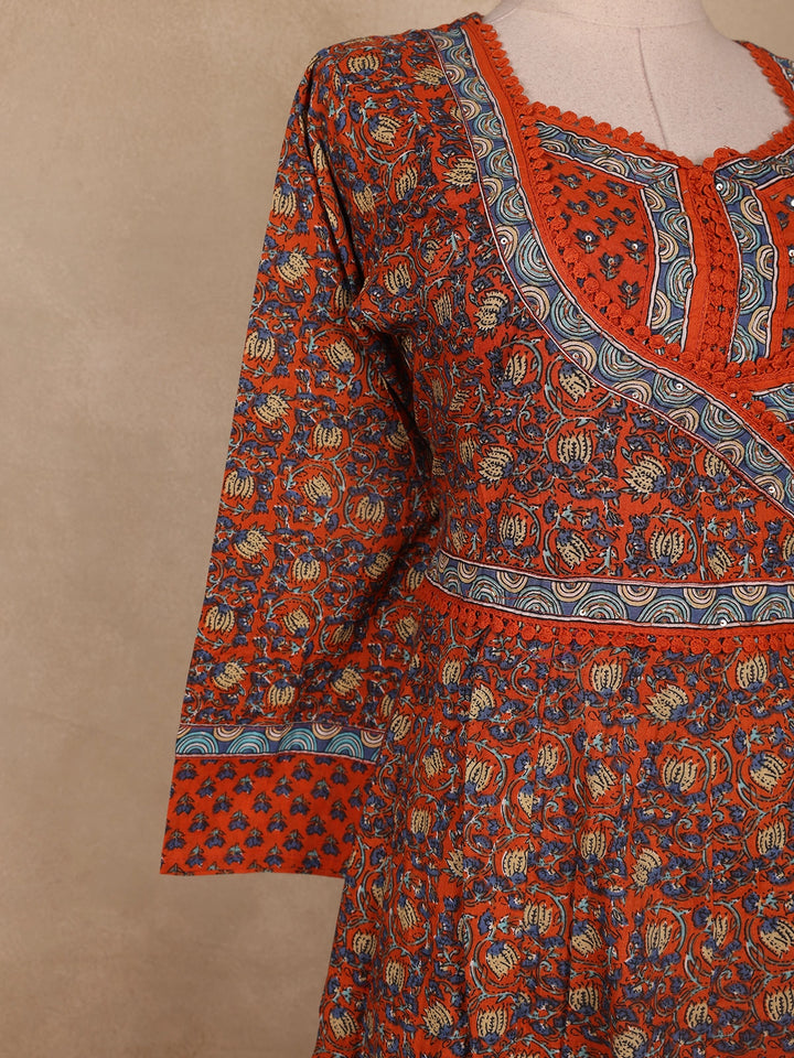 Orange Floral Printed Design Cotton Anarkali Salwar Suit