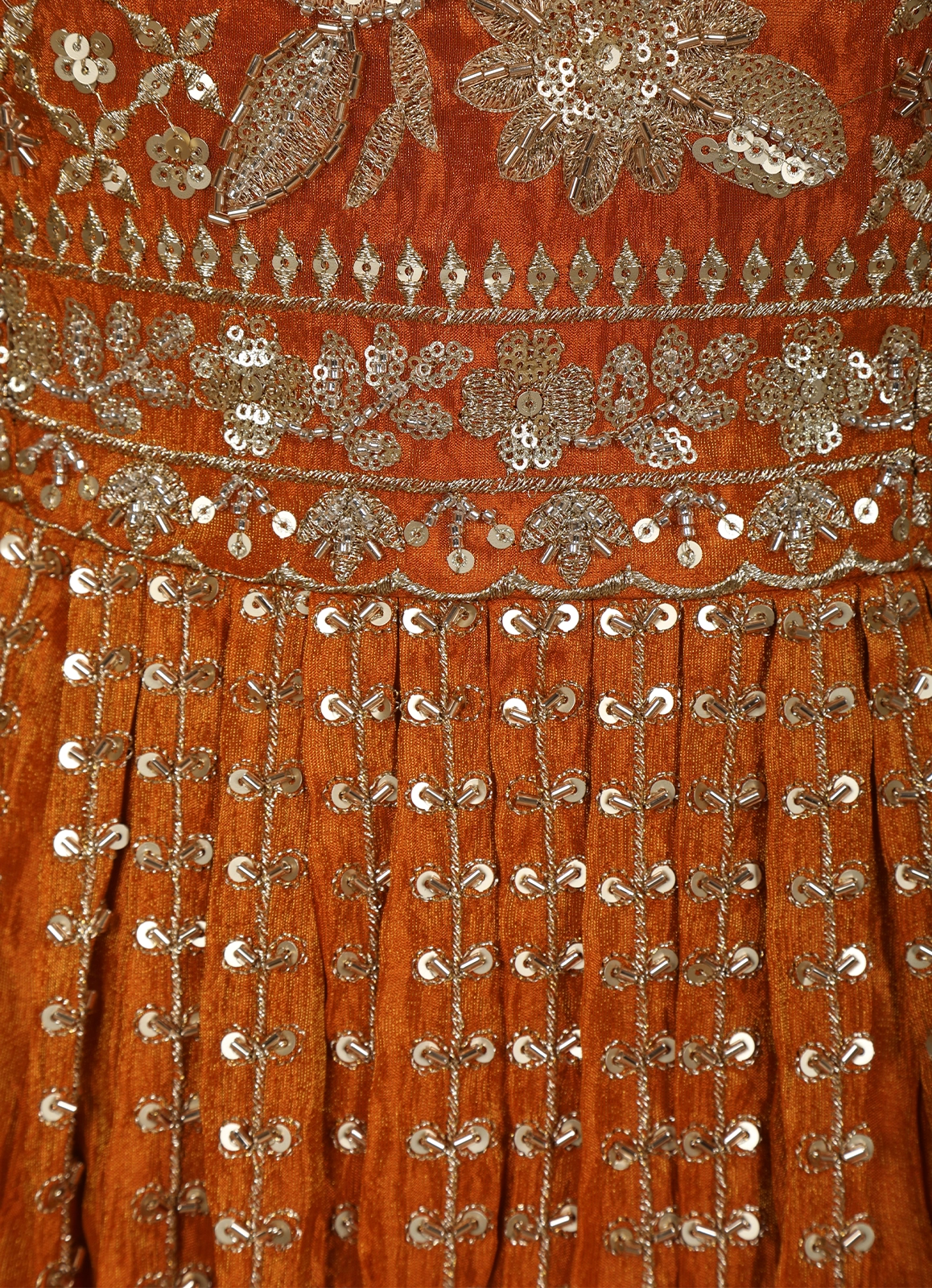 Radiate festive elegance in this OrangeĀ Floral Sequins and Beads Embroidered Design Tissue Peplum Palazzo Suit with Dupatta, crafted to make a striking statement at celebrations. The peplum top is beautifully adorned with intricate floral embroidery highlighted by shimmering sequins and delicate beadwork, creating a rich, textured appeal. The tissue fabric lends a subtle sheen, enhancing the regal mustard gold tone.