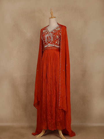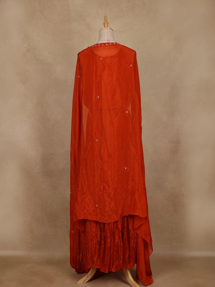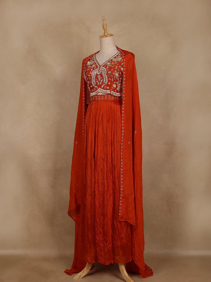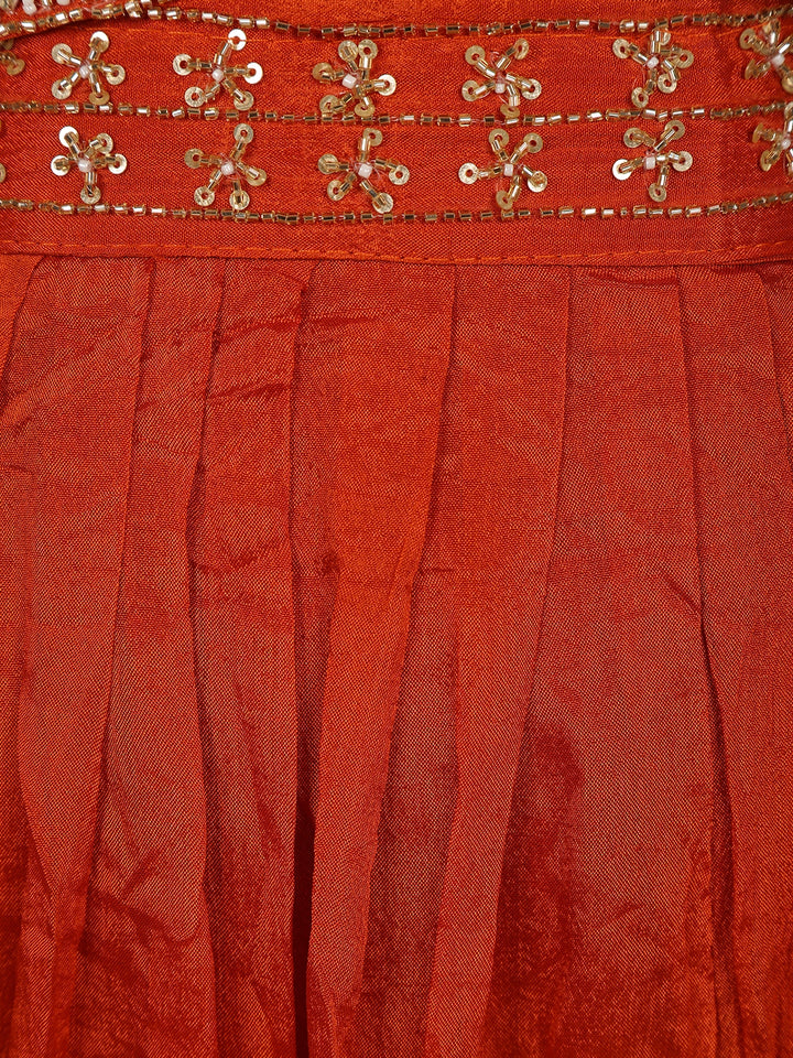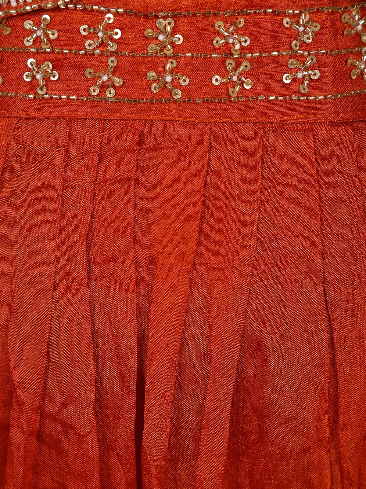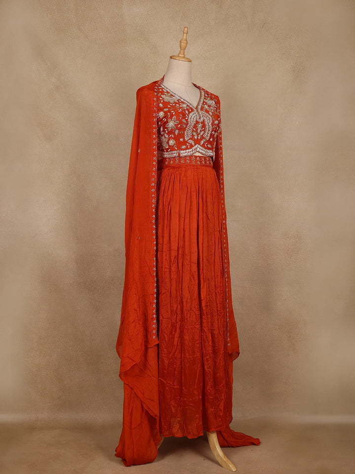 Orange Floral Sequins Embroidered Georgette Skirt Top