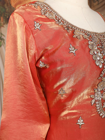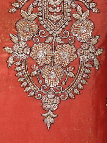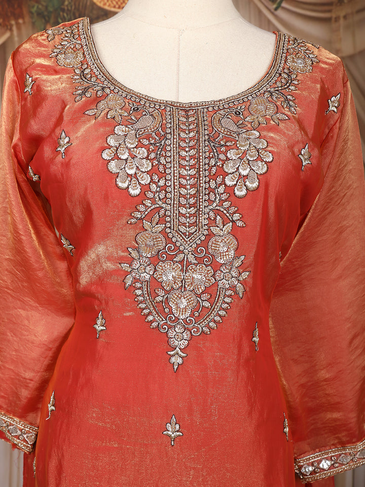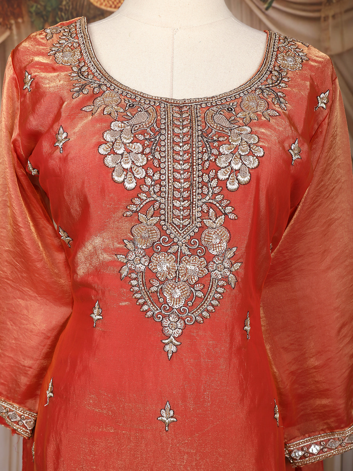 Orange Floral Sequins Embroidered Tissue Organza Salwar Suit