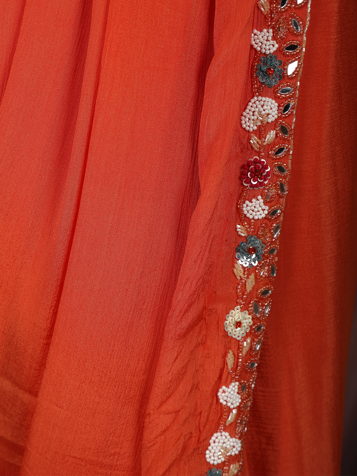 Orange Sequins and Beads Embroidered Design Georgette Indo-Western Skirt Top