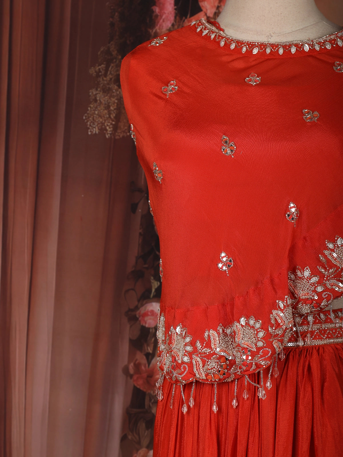 Orange Sequins & Beads Embroidered Design Georgette Indo-Western Skirt Top