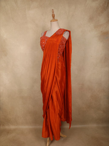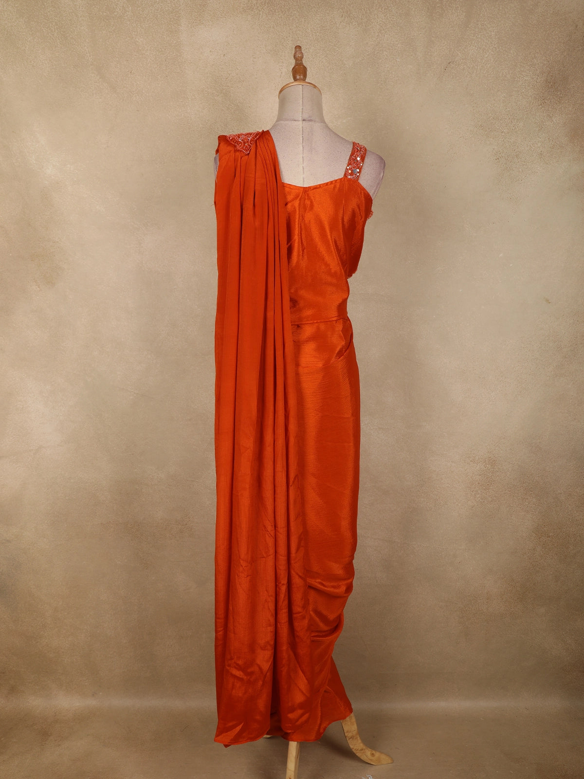 Orange Sequins Embellished Design Georgette Ready To Wear Saree with Designer Blouse