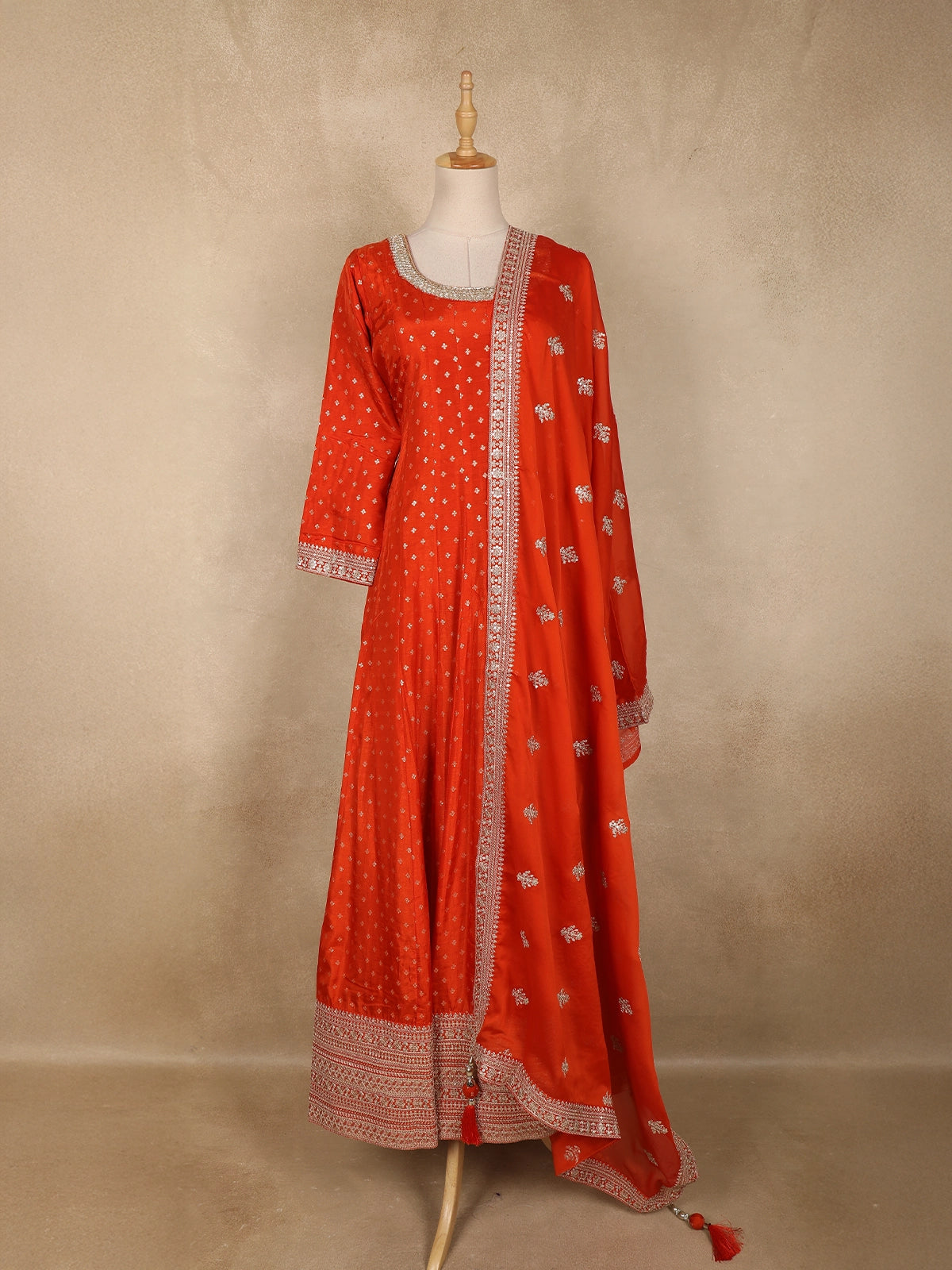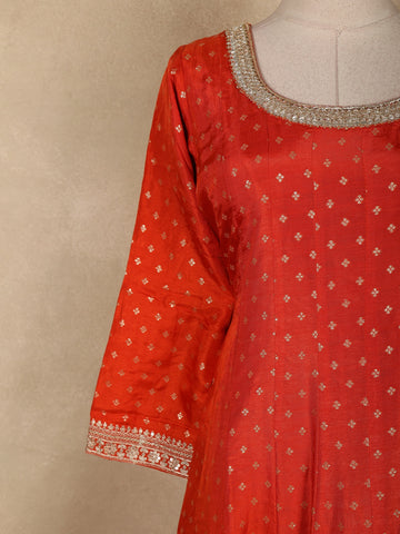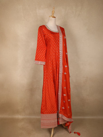 Orange Small Butta Woven Banarasi Silk Gown with Dupatta