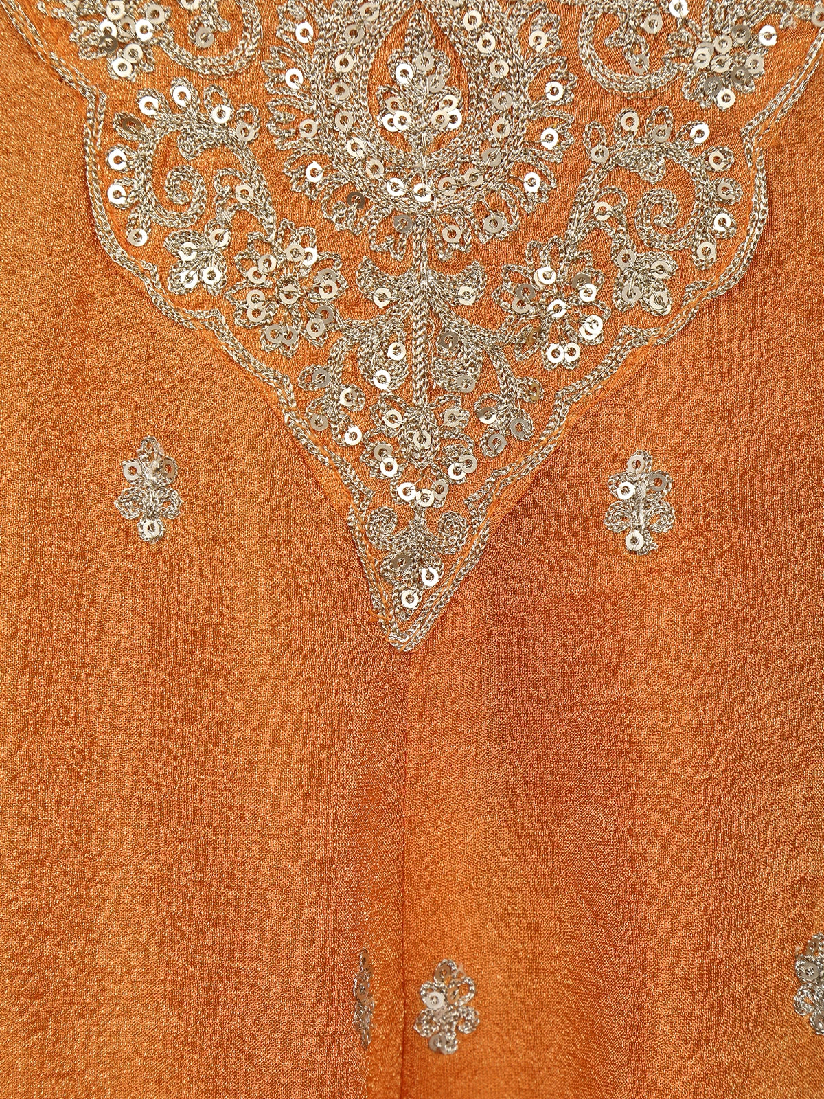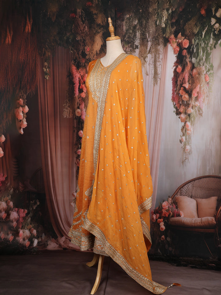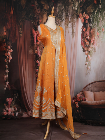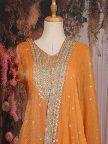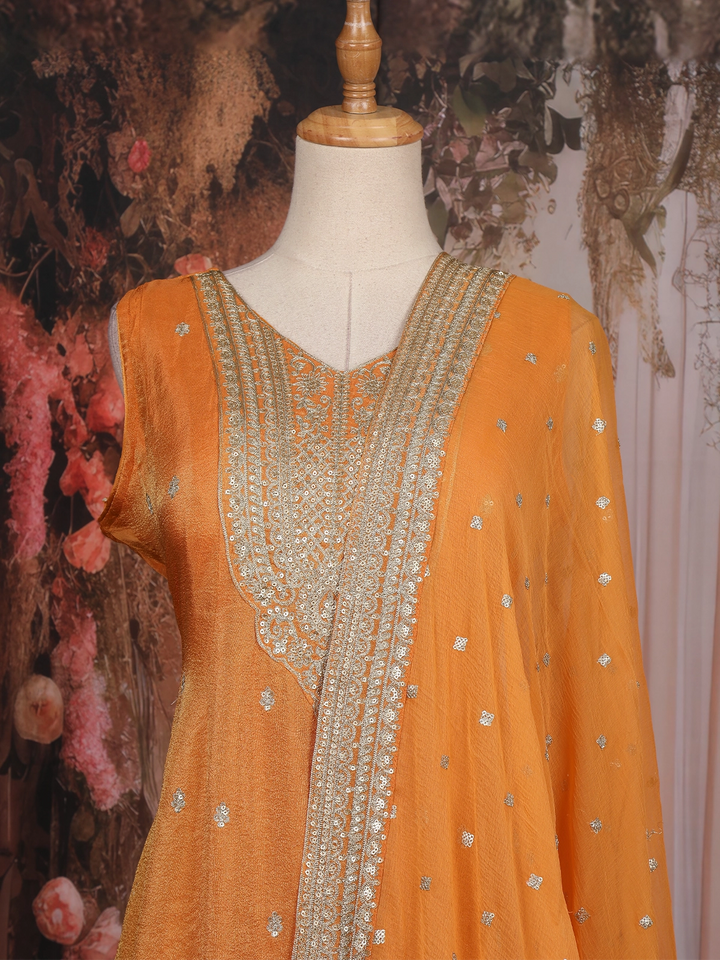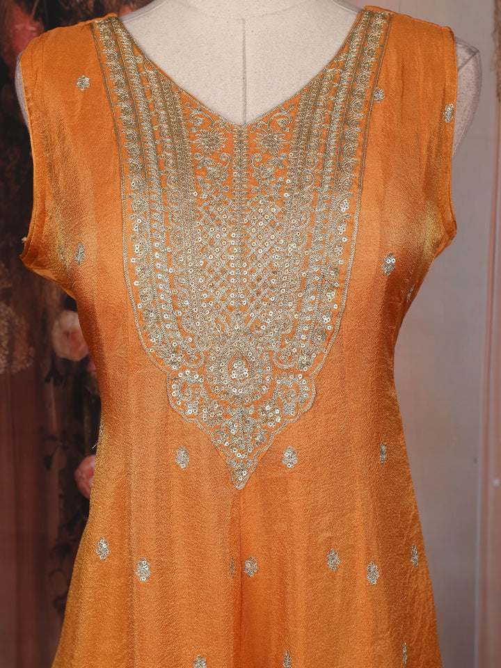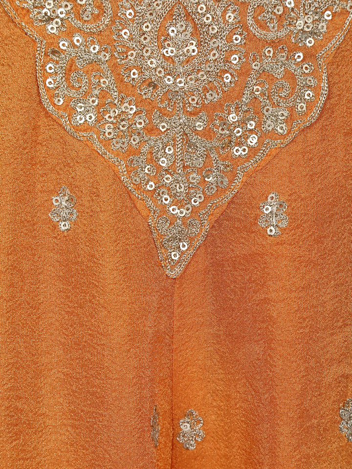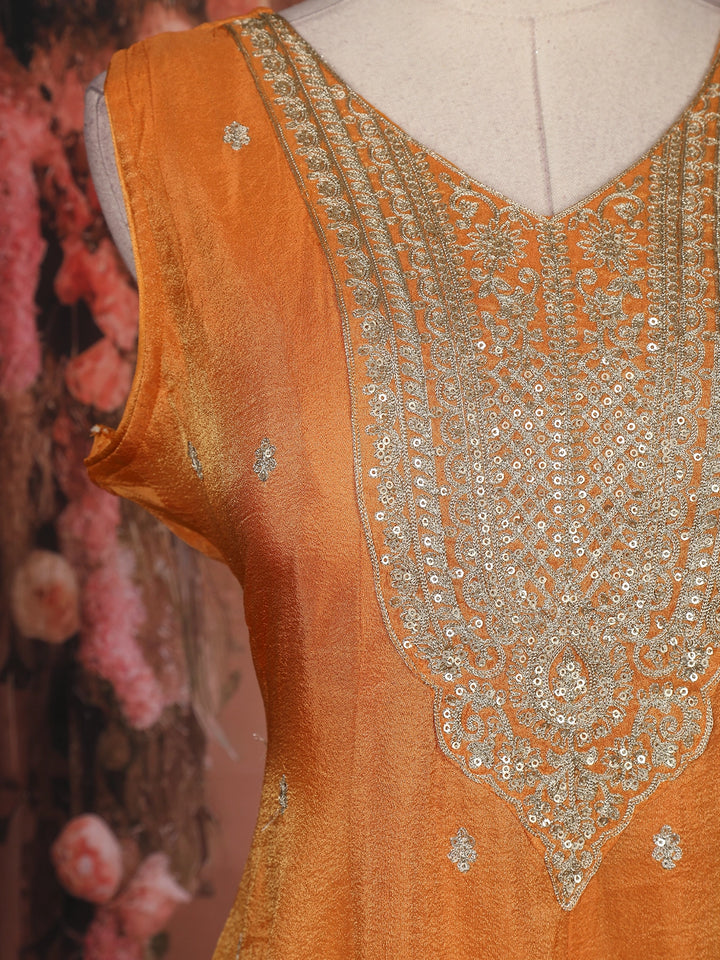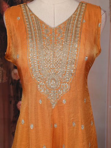 Orange Zari And Sequins Embroidered Silk Salwar Suit