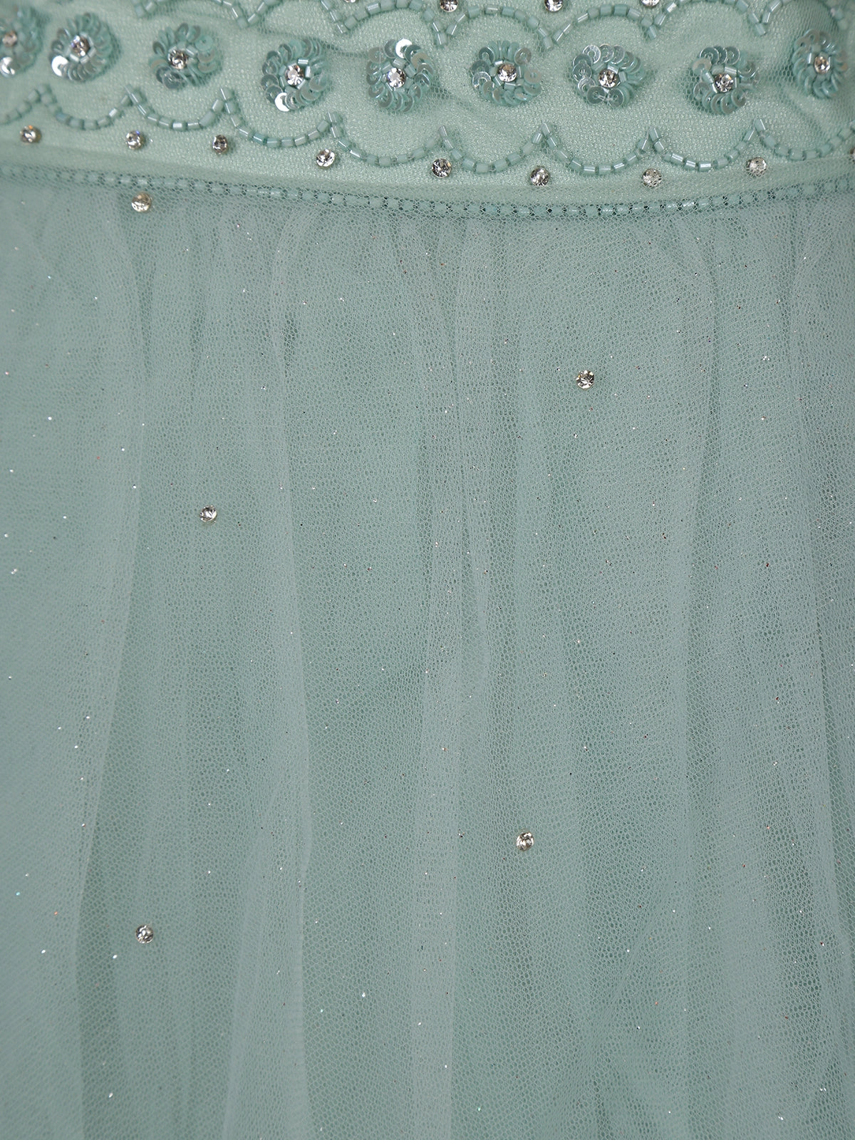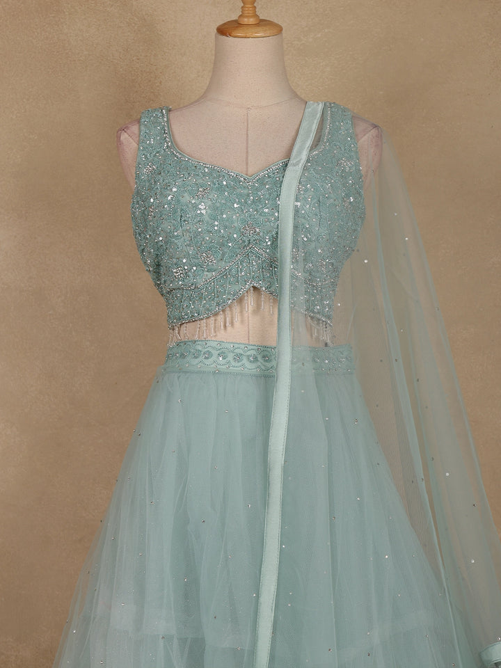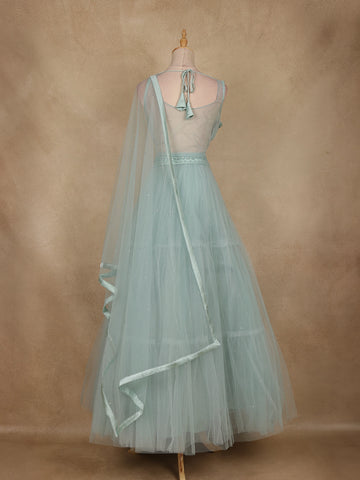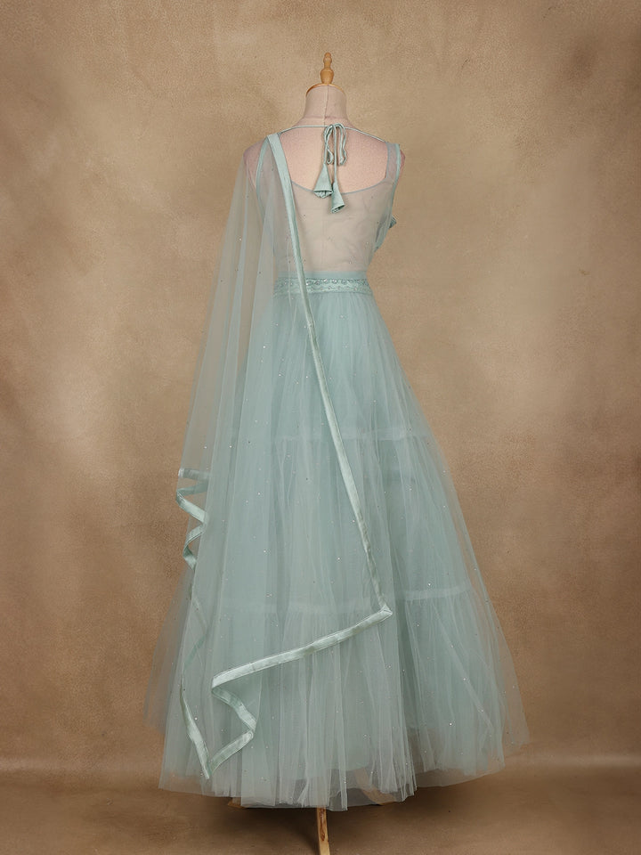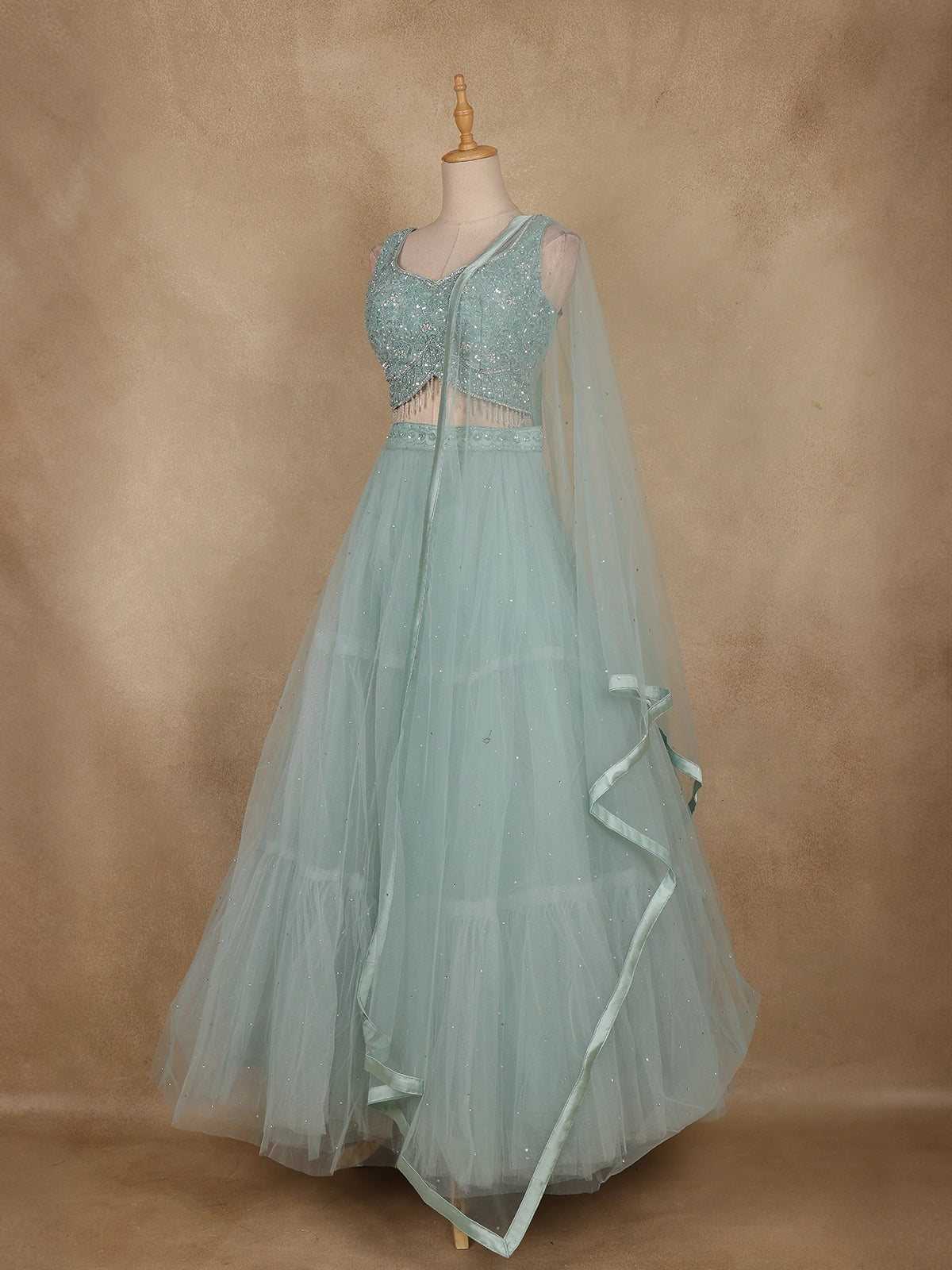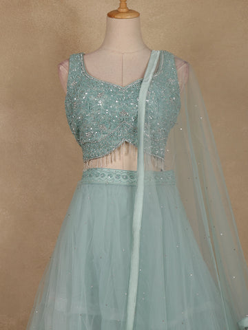 Pale Blue Floral Sequins Embroidered Net Lehenga Set