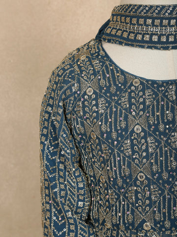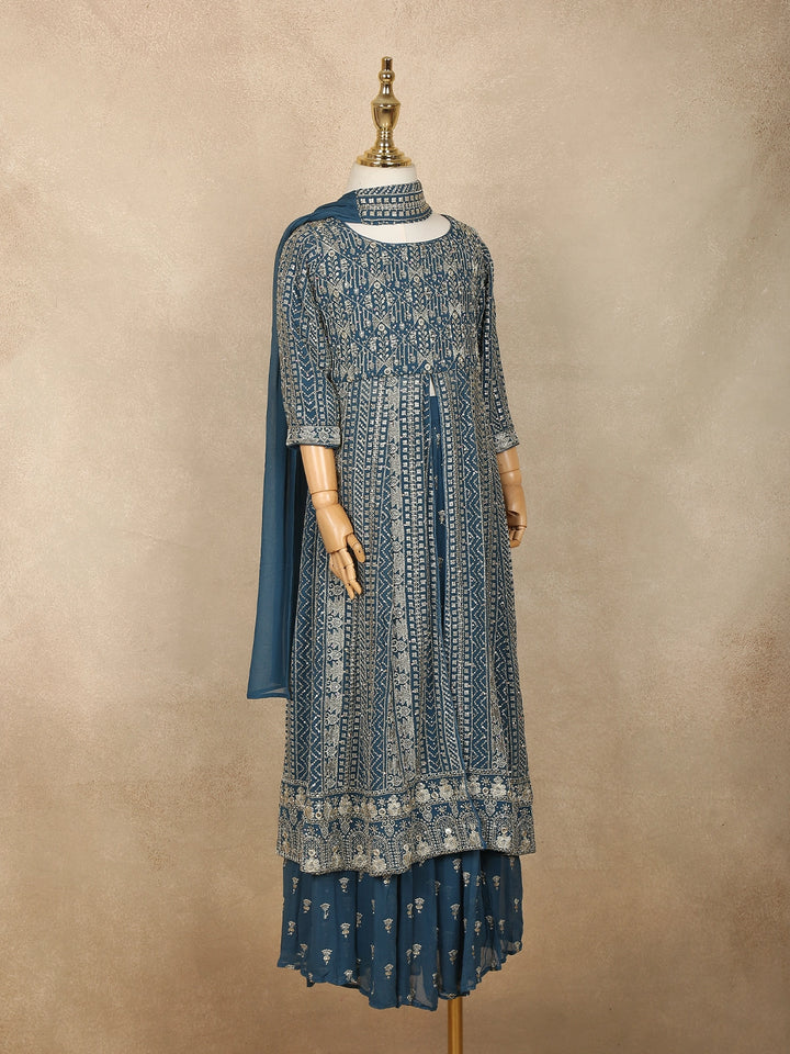 Pale Blue Mirror Embroidered Design Georgette Kids Palazzo Suit