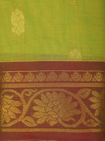 Parrot Green Butta Woven Design Cotton Saree with Contrast Border