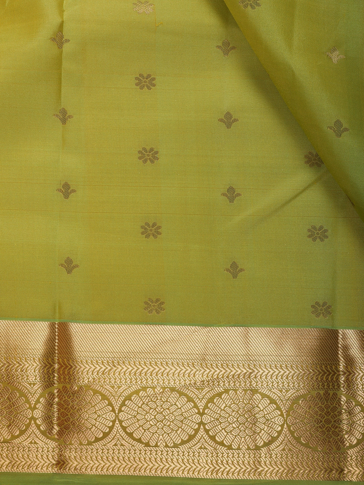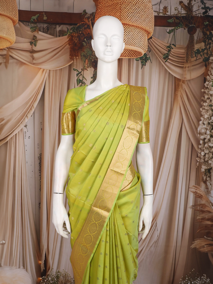 Parrot Green Butta Woven Design Pure Kanchipuram Silk Saree with Zari Woven Border