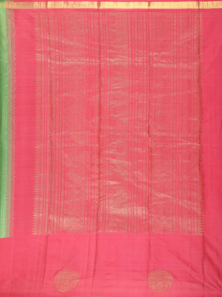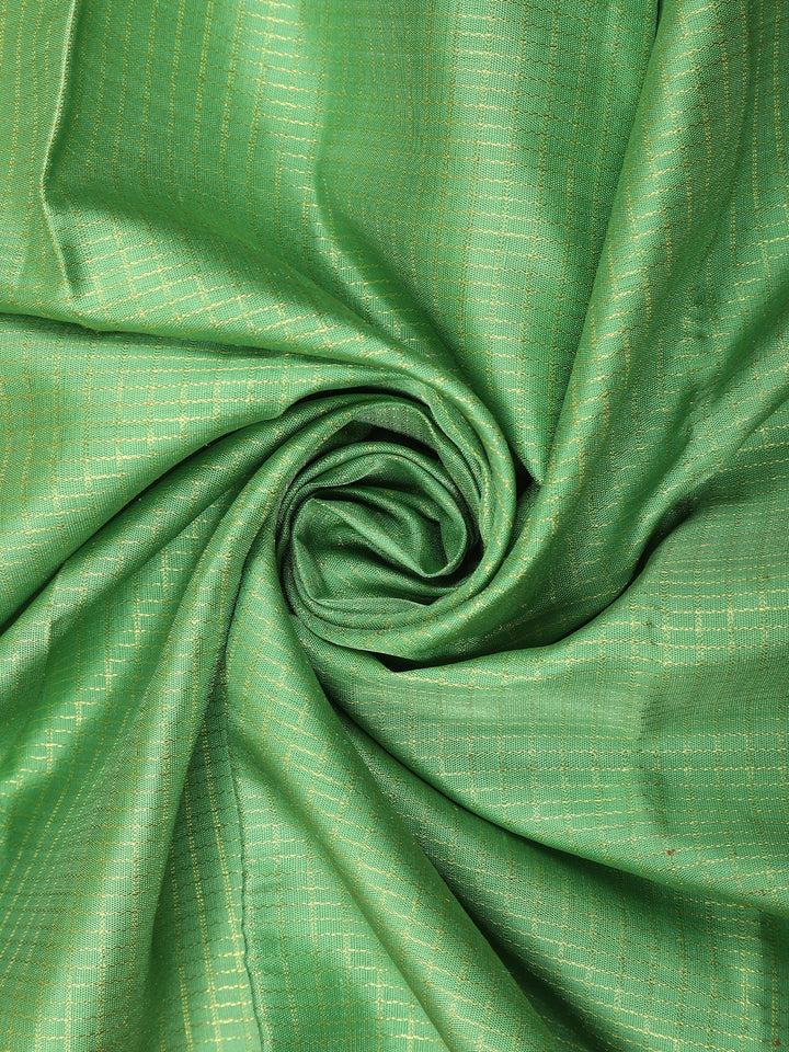 Parrot Green Checked Zari Woven Design Pure Kanchipuram Silk Saree with Contrast Red Border