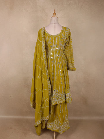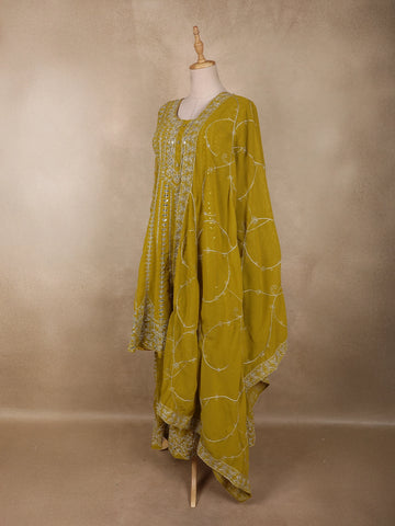 Parrot Green Floral Sequins and Thread Embroidered Design Georgette Palazzo Suit with Dupatta