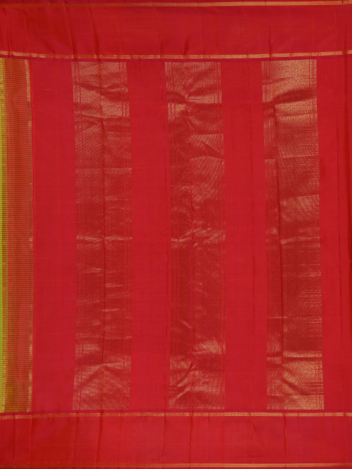 Drape yourself in vibrant elegance with this exquisite Parrot Green Pure Kanchipuram Silk Saree, a perfect blend of traditional craftsmanship and festive charm. The saree features a mini checked pattern across the body, beautifully complemented by a contrasting red pallu and blouse that radiate timeless South Indian grandeur.