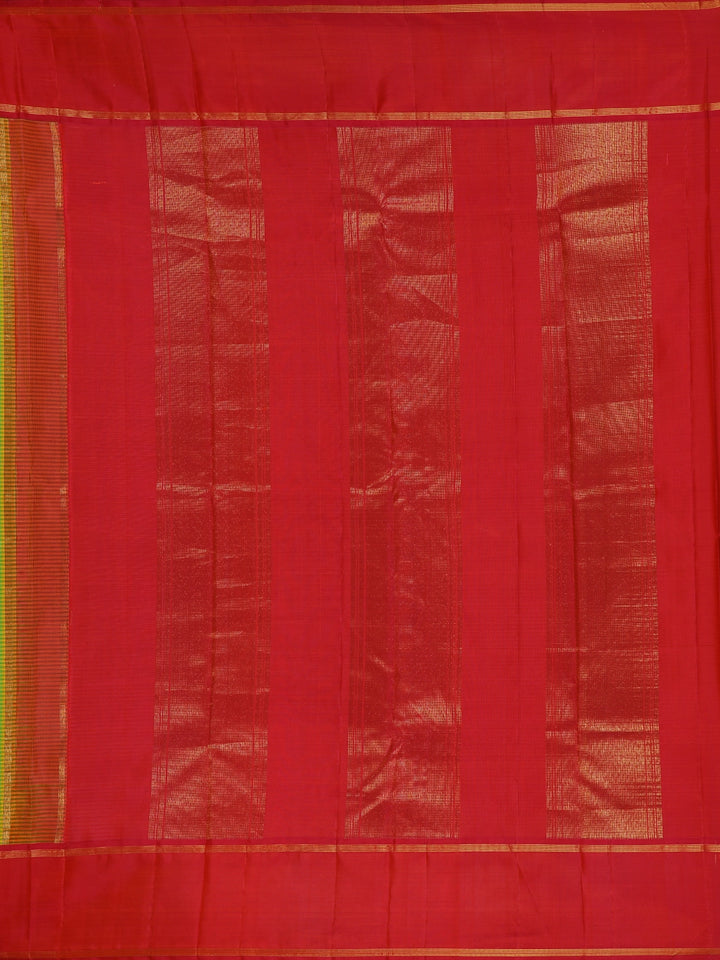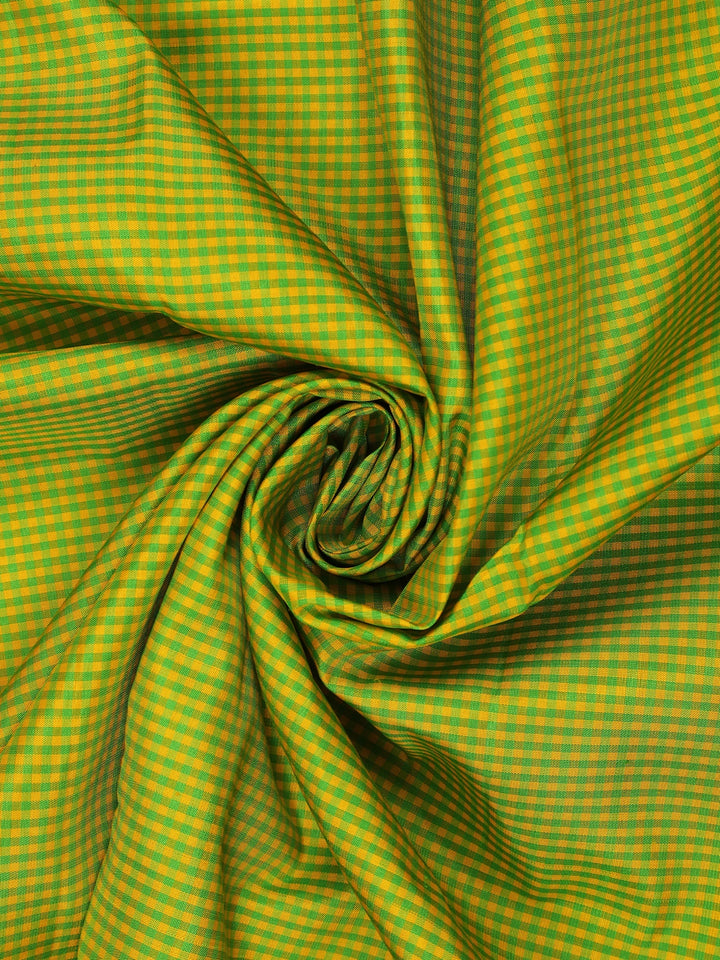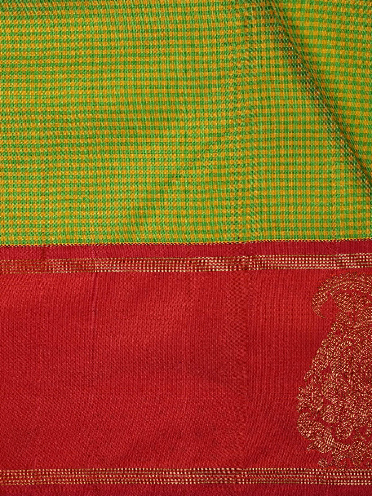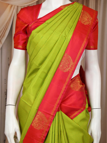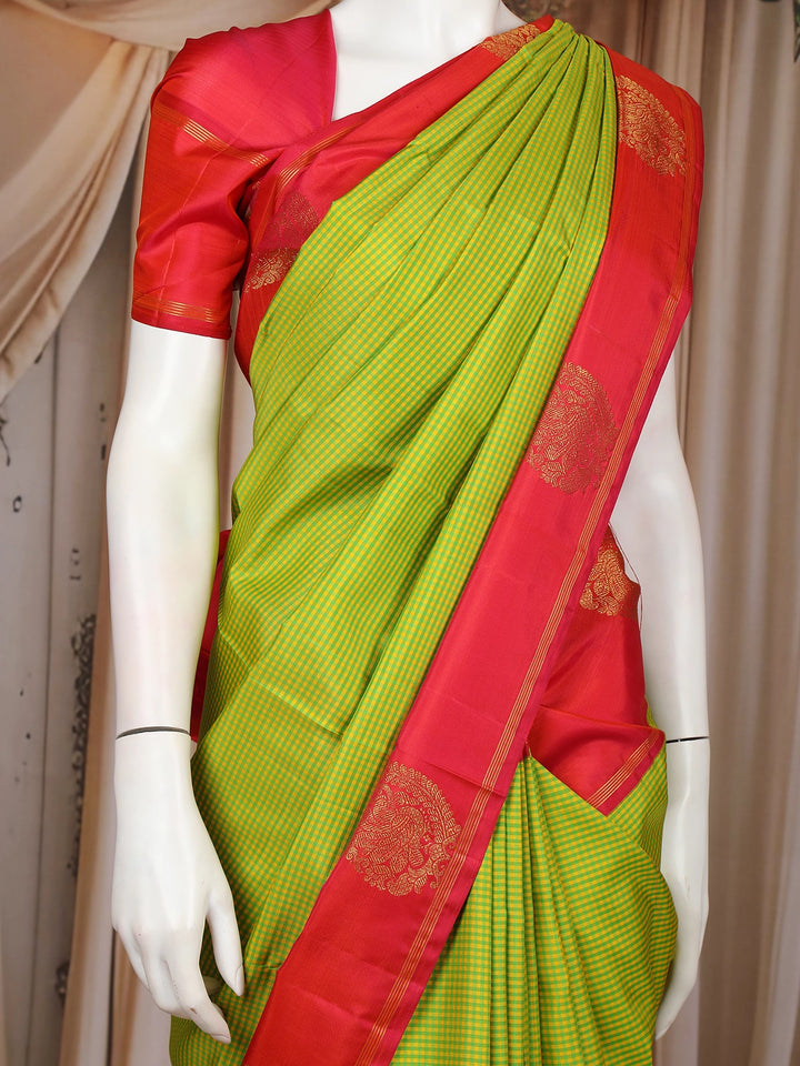 Parrot Green Mini Checked Design Pure Kanchipuram Silk Saree